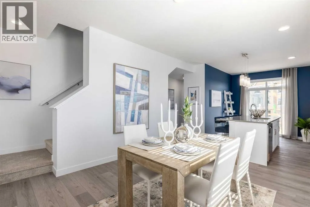 roads or weaving past rows of parked cars just to start a walk.Inside, the design keeps the same confident restraint. Bright cabinetry, QUARTZ COUNTERS, and MATTE BLACK HARDWARE create a clean, modern contrast that feels intentional without trying too hard. The main floor flows the way everyday life tends to unfold—coffee and emails at the KITCHEN ISLAND, groceries landing on the counter after work, and evenings drifting out to the WEST-FACING BALCONY when the sun starts its slow exit.Upstairs, THREE BEDROOMS strike the balance between practical and personal. The primary bedroom stays calm and well-scaled with its own ensuite and a closet that works well for daily life. The additional bedrooms flex easily—guests, office, hobby space, or a combination depending on the season of life you’re in. And the laundry sits exactly where you want it: upstairs, close to the bedrooms, not somewhere you forget about.Downstairs, the TANDEM DOUBLE GARAGE quietly solves more problems than it gets credit for. Two vehicles if you need them, or one vehicle plus bikes, gear, storage, and the inevitable extra freezer that somehow every household ends up owning.The location within the development is another quiet advantage. Positioned near the entrance, getting in and out is refreshingly simple—no maze of private lanes or long internal drives before you reach your door. Just pull in, pull out, and get on with your day.And beyond it all sits Alpine Park—one of southwest Calgary’s most thoughtfully planned new communities. WIDE BOULEVARDS, WALKABLE STREETS, parks placed where you’ll actually use them, and a neighbourhood design that feels intentional from the ground up.IMMEDIATE POSSESSION IS AVAILABLE, with flexibility for the right buyer.All that’s missing now is someone who appreciates good design when they see it.• PLEASE NOTE: Photos are of a finished Showhome of the same model – fit and finish may differ on finished spec home. Interior selections and floorplans shown in photos. (id:64429)