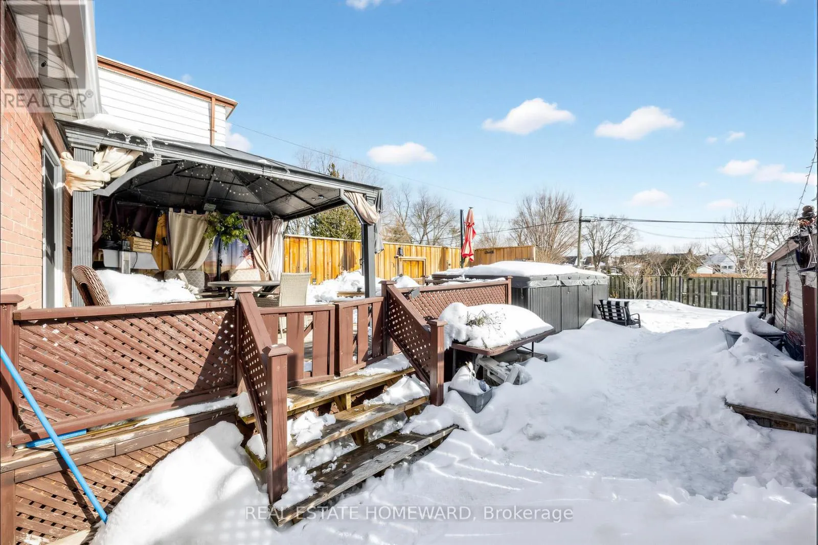 Lovely & well-cared for Detached Home w/ 3 + 1 bdrms, 2 bathrms, long private driveway with Detached Garage, spacious fenced backyard with walk-out from main floor bdrm/office to a large “swim spa” pool/jacuzzi tub & surrounding deck w/ built-in lighting, perfect for those summer nights to enjoy! Updated flooring in basement, newer shingled roof, eaves, downspouts and HVAC system