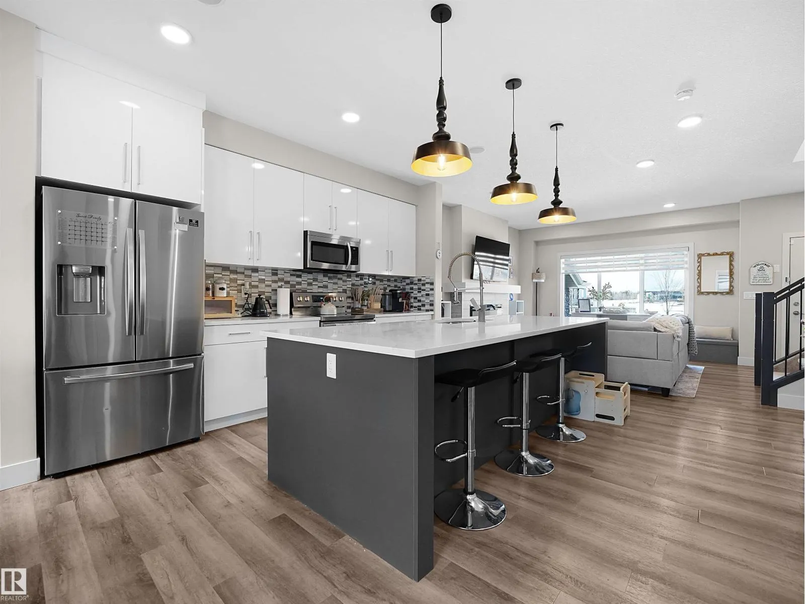 Welcome Home! Stylish and spacious 5-bedroom, 4-bathroom home offering modern design and exceptional functionality. Situated on a prime corner lot with serene pond-facing views, this beautifully maintained property blends comfort and style. The main floor showcases a bright open-concept layout featuring a generous living room, spacious dining area, and a contemporary kitchen with sleek cabinetry, stainless steel appliances, and ample