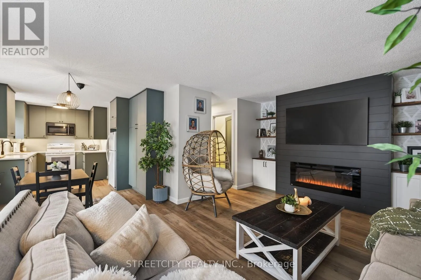 Stylish 3 bedroom, 1.5 bathroom townhouse offering comfortable, low maintenance living in Northwest London. The fabulous kitchen features modern cabinetry, clean finishes, and a functional layout, opening to a bright dining and living area with updated flooring and a striking fireplace feature wall that adds warmth and character. A patio door leads to a private courtyard patio providing private outdoor