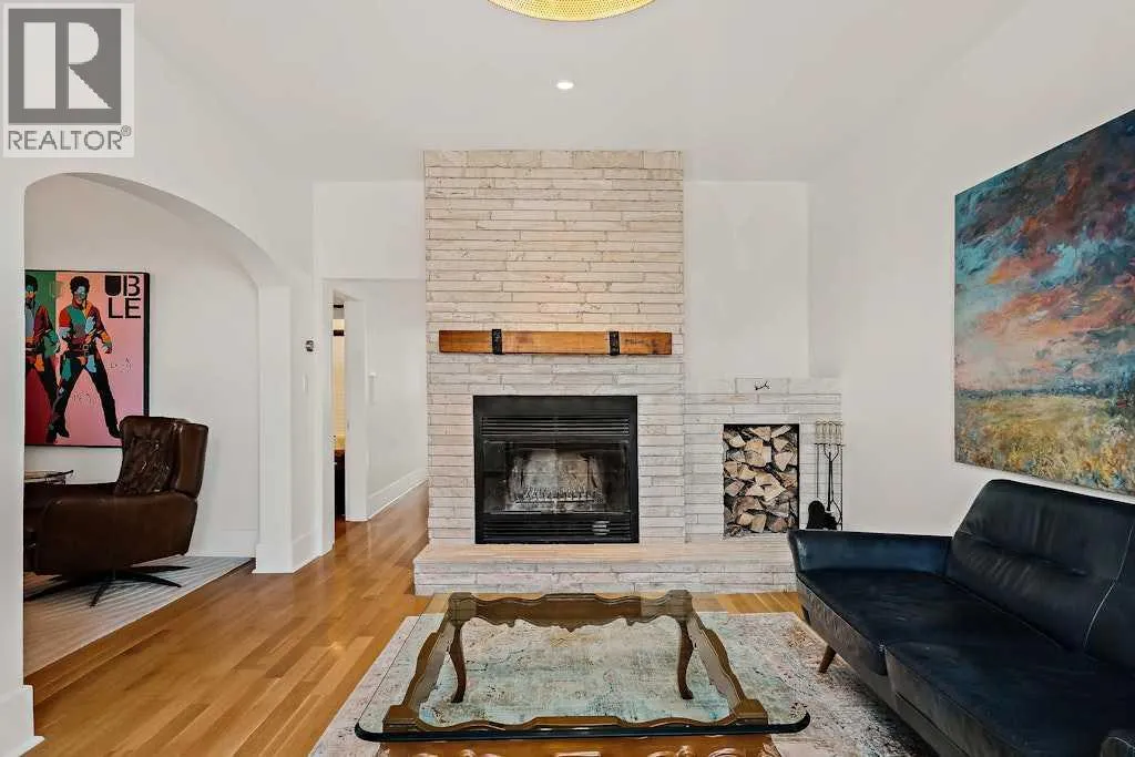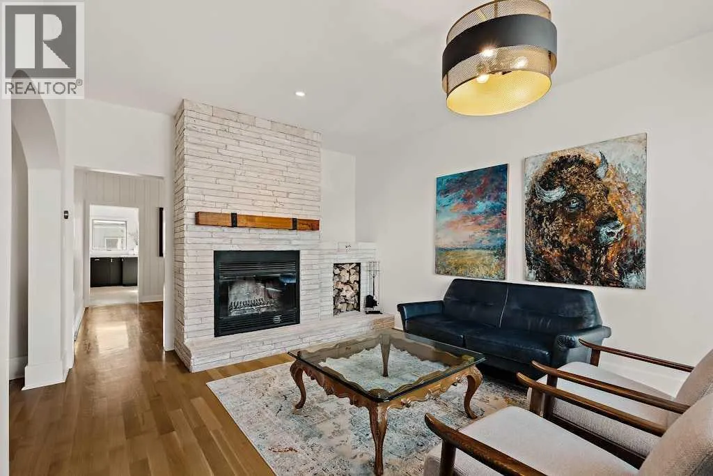 Updated character home in the heart of Bankview featuring a rare wood-burning fireplace, main-floor primary suite, and oversized double garage. All just minutes from the restaurants and energy of 17th Avenue.The covered Douglas fir front porch welcomes you into a home that balances original charm with thoughtful modern updates. Inside, the living room is anchored by a striking wood-burning fireplace