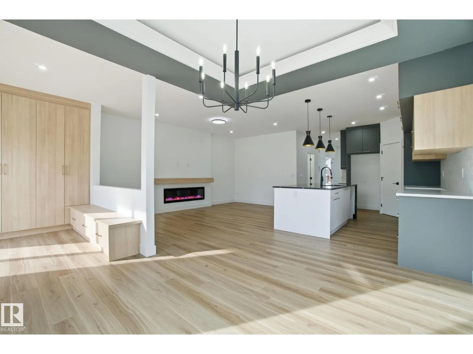 Experience elevated living in this brand-new 2023 sq ft 2-storey home on a prominent corner lot in the sought-after community of Holyrood. Designed with style and functionality, this home features 9 ft ceilings on all three levels.The open-concept main level showcases luxury vinyl plank flooring, a bright living room with electric fireplace, flowing into a chef-inspired kitchen with quartz countertops,