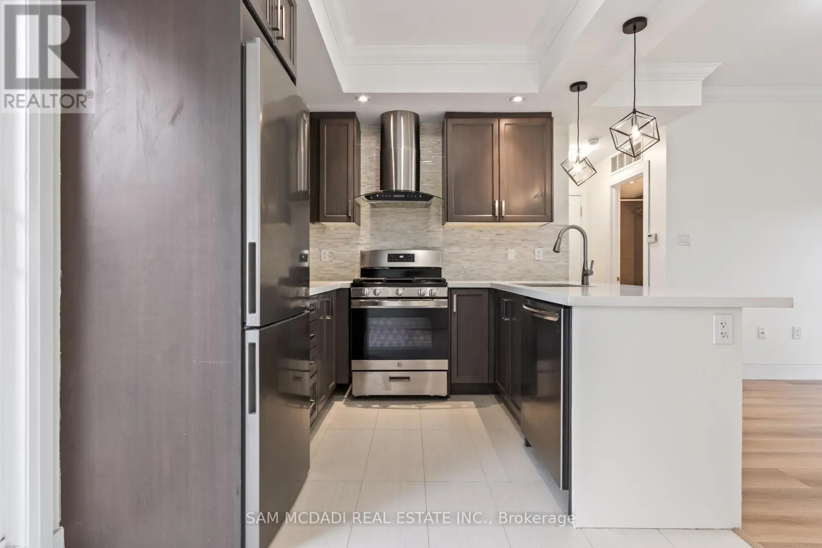 Luxury executive townhome, fully renovated and ideally located in the highly desirable Cawthra & Dundas pocket of Applewood. Renovated with top-quality materials and fine craftsmanship, this home offers a stunning gourmet kitchen featuring quartz countertops, stainless steel appliances, pot lights, crown moulding, and a dedicated dining area with a walkout to a private balcony. Spacious rooms, large windows, and abundant