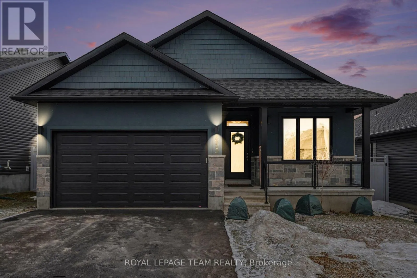 Stunning 5-year-old bungalow in the highly sought-after Almonte area, perfectly blending small-town charm with modern luxury. This bright 2+1 bedroom home features an expansive open-concept kitchen, living, and dining area highlighted by dramatic vaulted ceilings and a custom-built fireplace. The kitchen boasts a large walk-in pantry, ideal for organization. Step out from the main level onto a brand-new deck, perfect