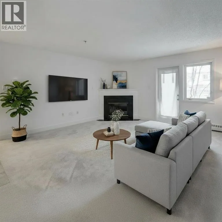 Welcome to this spacious and well-appointed main floor one-bedroom condo at 117-790 Kingsmere Crescent SW in the desirable Kingsland community. Offering comfort, convenience, and modern finishes, this pet-friendly building is perfect for first-time buyers, professionals, or investors. The open and functional layout features a large living room highlighted by a cozy corner gas fireplace, creating a warm and inviting space