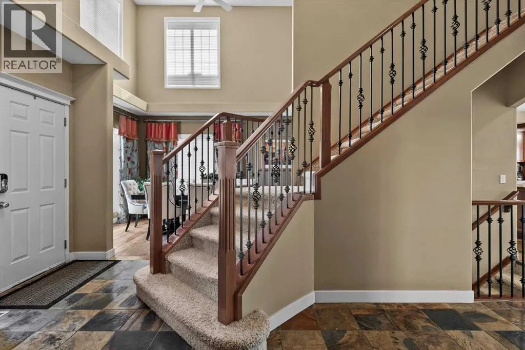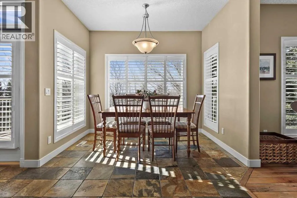 both St. Basil and Tuscany School, with the Tuscany Market and Tuscany Club equally close. The neighbours are wonderful, the street is full of families, and that sense of community is something you feel the moment you arrive. Inside, the vaulted foyer sets a welcoming tone, leading into a home where the layout has been thoughtfully designed for real family life. Slate and hardwood flooring carry through the main floor, and a generous vaulted room at the front – currently formal dining – offers flexibility as your needs evolve. A separate den with built-ins provides a quiet retreat for work or study.The back of the home is where things open up beautifully. An almost entirely windowed rear wall floods the family room, dining nook, and kitchen with natural light, while garden doors lead to the upper deck – where winter reveals mountain and Canada Olympic Park views, and summer delivers those same COP views framed by the privacy of mature trees. Plantation shutters add a charming, tailored touch throughout. The kitchen centres around cherry cabinetry, a tiered island, and serious cooking credentials: a Viking gas range, newer oversized KitchenAid refrigerator (custom cabinet panels, on order, will match the cabinetry colour), KitchenAid oven, and newer microwave. A pantry with pass-through access to the dining room keeps everything connected and functional. Upstairs, the primary bedroom is genuinely spacious, with views that make mornings worth lingering in. The ensuite features a 6-foot clawfoot bathtub and separate shower, with a roomy walk-in closet rounding out the retreat. Two additional bedrooms complete the upper level. The walko ut basement has been set up for life’s best moments – a large family room ready for movie nights (the wall-mounted TV is included), with room to add a pool table or exercise area. A fourth bedroom with access to a full bathroom and a well-sized laundry room complete the lower level. Step outside to a backyard that earns its keep in every season: an extensive patio, established perennial gardens, and the kind of summer privacy – thanks to mature trees and privacy panels – that makes the yard feel like your own retreat. And when it’s time to head out, the back gate puts the path, the parks, and the schools right at your doorstep. (id:64429)