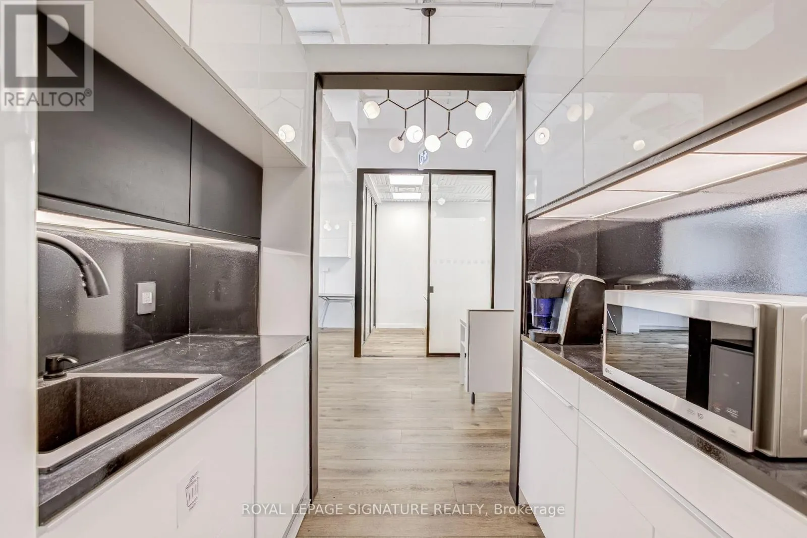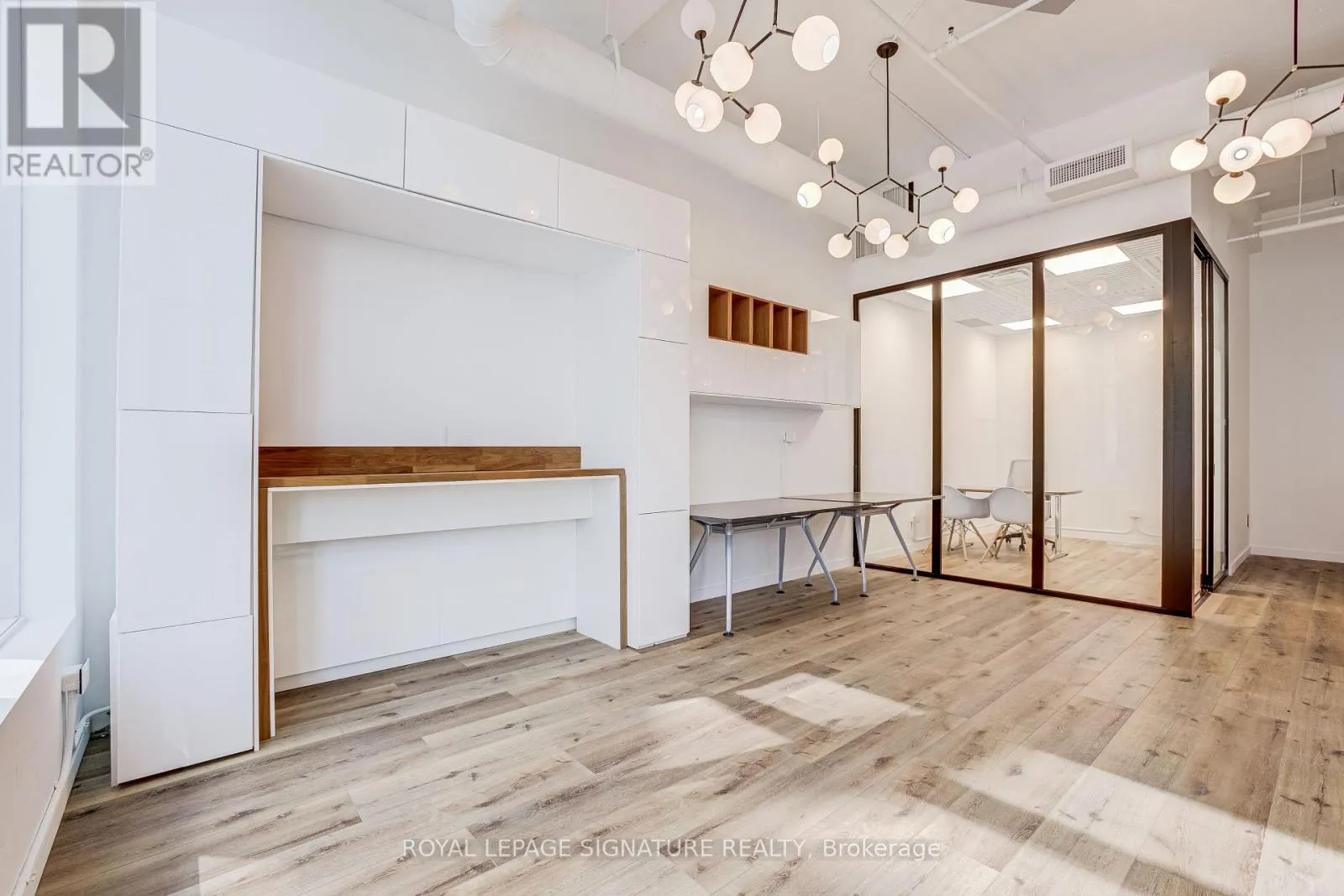 Fantastic open-concept, bright office space available at Daniels 130 Queens Quay East. This modern, built-out suite features a welcoming reception area, kitchenette, one boardroom, one smaller meeting room, and an open area designed for collaborative workstations.The interior layout includes glass-front offices, impressive 12’4″ ceiling height, and a flexible, modular configuration ideal for both team collaboration and private work. The thoughtfully