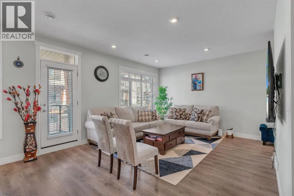 | BONUS FLEX SPACE | WALK TO UPCOMING SCHOOL | MINUTES TO SAVANNA BAZAAR & GURUDWARA SAHIB | BEAUTIFUL COURTYARD AT THE FRONTStep inside this upgraded and modern townhome, where you are welcomed by a bright open-concept main floor featuring 9 FT ceilings and large windows, allowing natural light to pour in throughout the day. The spacious living room creates the perfect setting to relax with family or entertain guests.The stunning chef-inspired kitchen is truly the heart of the home, featuring elegant cabinetry with soft-close doors, quartz countertops, stainless steel appliances, a corner pantry, and an extended central island with beautiful pendant lighting-perfect for both meal preparation and entertaining.The main level also includes a dedicated dining area, convenient half bathroom, and a laundry area, making everyday living both practical and comfortable. Step outside onto your private balcony, ideal for BBQs and outdoor relaxation.Upstairs you’ll find three spacious bedrooms, including the primary retreat with a walk-in closet and a 4-piece ensuite bathroom. Two additional bedrooms – one featuring its own private balcony – both include built-in closets and are perfectly positioned next to the main bathroom, offering comfortable space for family members or guests.The upper-level bonus/flex space is perfect for a home office, study area, or reading nook, adding valuable versatility for today’s lifestyle.Location truly sets this home apart. Situated within walking distance to the upcoming school and Savanna Bazaar, you’ll enjoy easy access to grocery stores, coffee shops, Chai Bar, restaurants, playgrounds, and ev eryday amenities. Commuting is convenient with a short drive to Saddletowne, Martindale, and McKnight LRT stations, as well as the Genesis Centre YMCA.Perfect for buyers searching for a Savanna townhouse with garage and driveway, a modern NE Calgary townhouse near Savanna Bazaar, or a bright open-concept home in Savanna Calgary close to schools and amenities.Townhomes in Savanna with both a private driveway and attached garage rarely come available – don’t miss this opportunity. Book your private showing today! (id:64429)