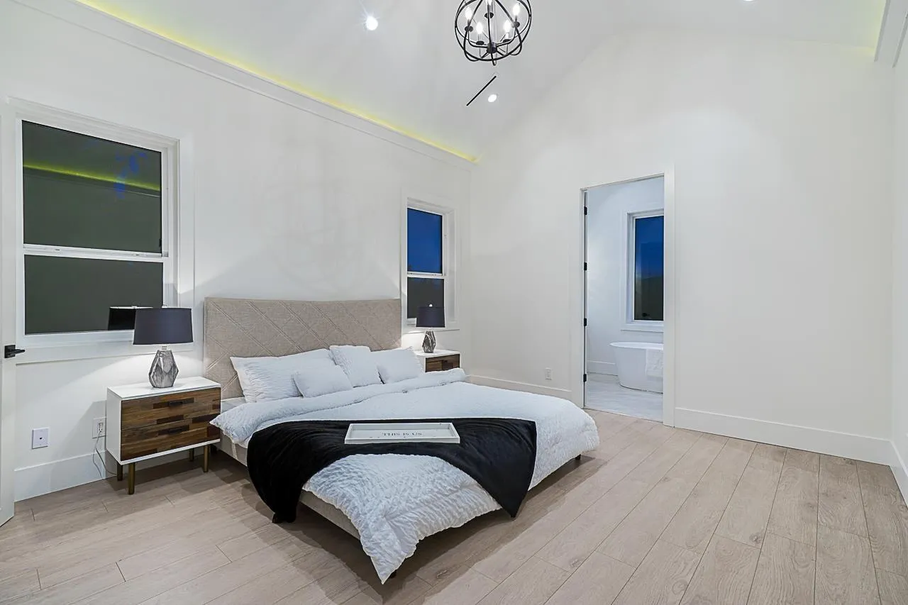 Experience refined living in this stunning custom-built residence, situated in one of Surrey’s most sought-after locations.Huge 7,373 sqft,rectangular lot with convenient rear lane access, this exceptional home combines elegant design, thoughtful functionality, and impressive curb appeal.The upper level showcases 4 Bedrooms including two luxurious suites, each featuring soaring vaulted ceilings and spa-inspired ensuites,designed for ultimate comfort. On the main floor,A