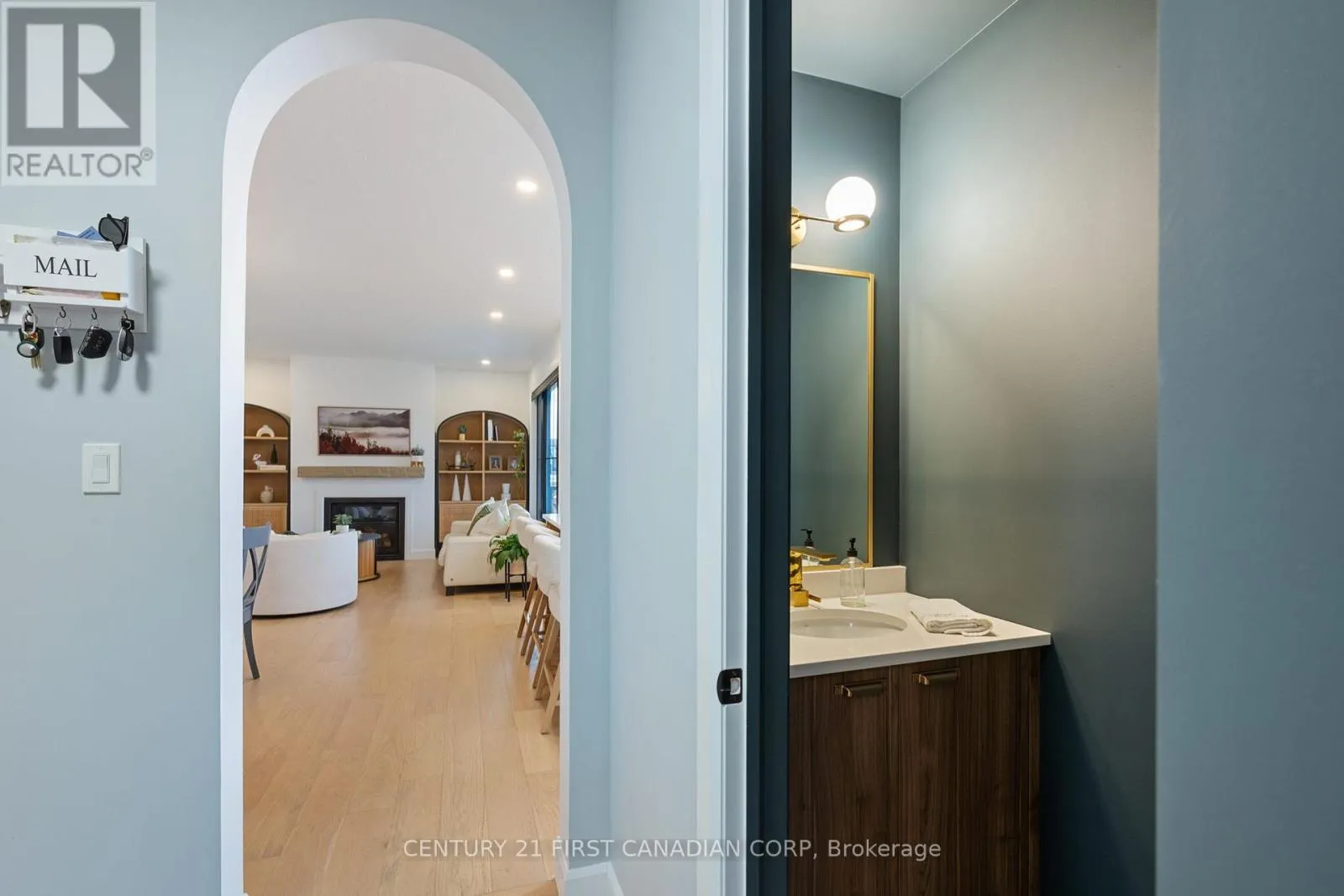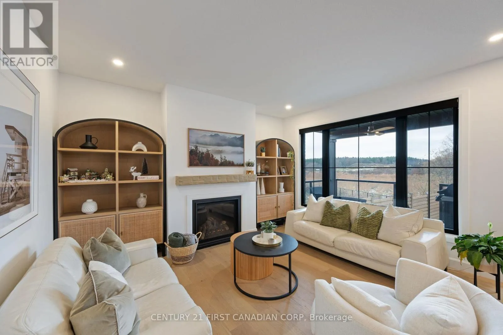Built by Royal Oak Homes and only 2 years NEW, this exquisite 2-storey home in sought-after Riverbend is situated on an oversized 78′ wide lookout lot and features 4 bedrooms and 3.5 bathrooms, blending sophistication, functionality, and modern design. Step into the foyer where your eyes are immediately drawn to the custom arched glass doors leading to the living area,