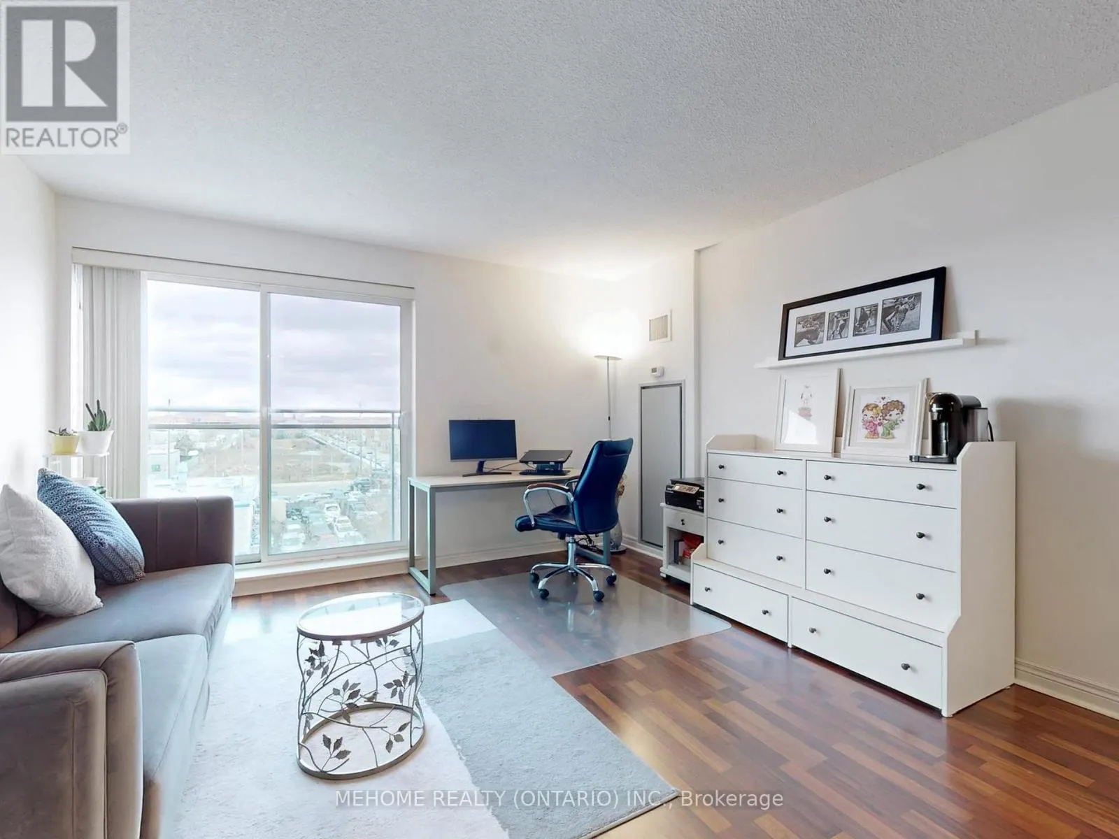 Welcome to this bright, east-facing suite in the desirable Clairlea community, complete with parking and a locker. This beautifully maintained, move-in ready condo offers a thoughtfully designed open-concept layout filled with natural morning light, enhanced by fresh interior paint and modern laminate flooring throughout. The spacious kitchen features granite countertops, stainless steel appliances, and a convenient breakfast bar, while the