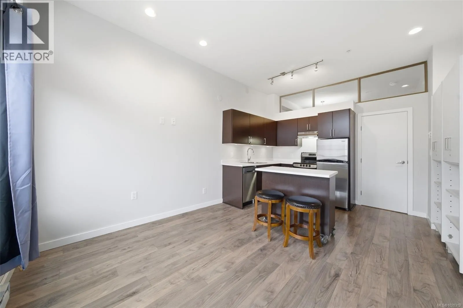 Welcome to The Zen, a well-regarded building ideally located on the edge of downtown Victoria. This bright south-facing one-bedroom offers an urban-chic feel with 10-foot ceilings, large windows, and a sunny Juliette balcony overlooking a quiet street. The thoughtfully designed space features new kitchen counters, a movable island, fresh paint, excellent built-in storage, and in-suite laundry. The bedroom includes a
