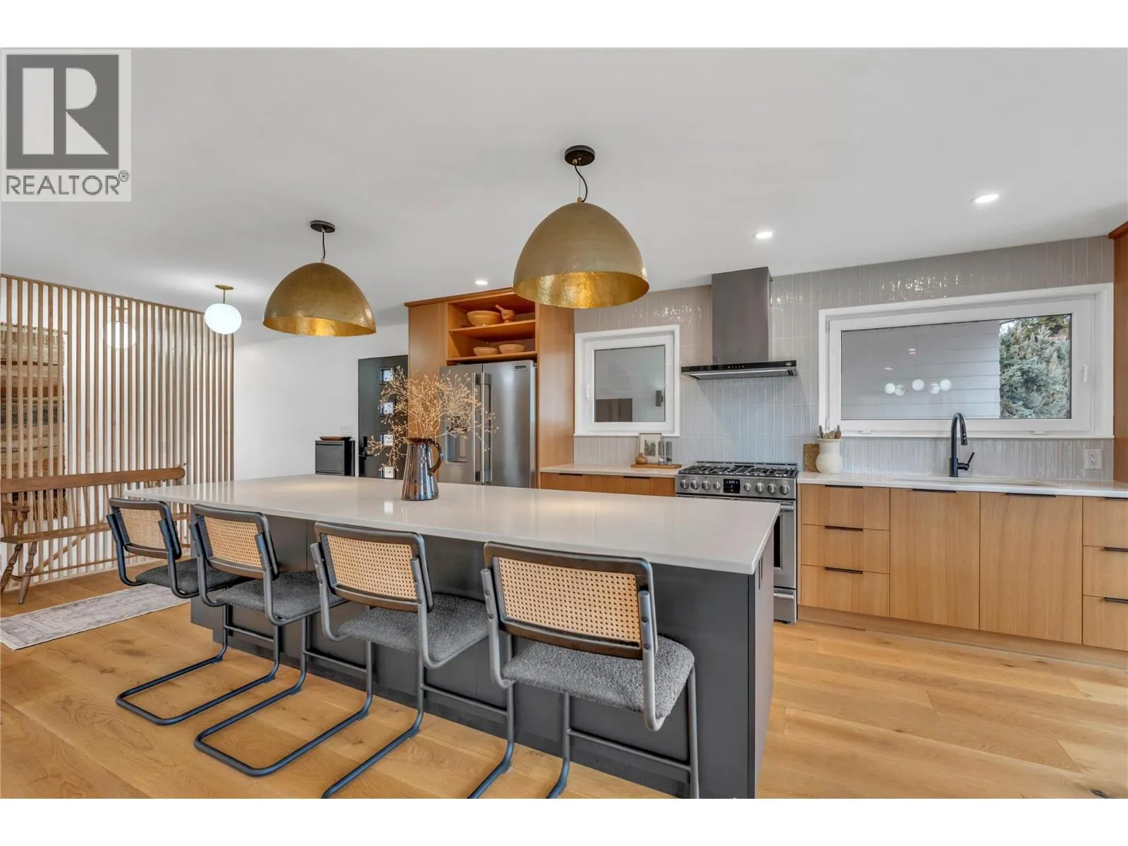 Perched to capture beautiful lake views, this extensively renovated rancher-style home with a detached garage offers the perfect blend of comfort, efficiency, and relaxed Okanagan living. The bright open-concept main level features warm white oak cabinetry, quartz countertops, and a thoughtfully designed kitchen complete with a gas range and double-drawer dishwasher, generous prep space, and excellent storage—ideal for both everyday