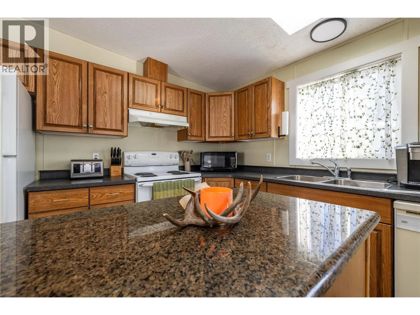 3 bedroom, 2 bathroom double wide manufactured home in Aberdeen Glen Village. Recent flooring and paint throughout. Large primary bedroom includes 4 piece ensuite. Spacious, open kitchen with granite island and skylight..Outside you can enjoy the big covered deck, fenced yard and garden plot. Storage shed included. Tons of room for parking, space for RV and 3-4 vehicles as well