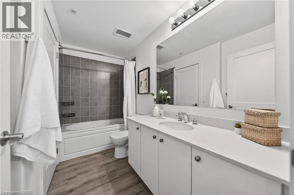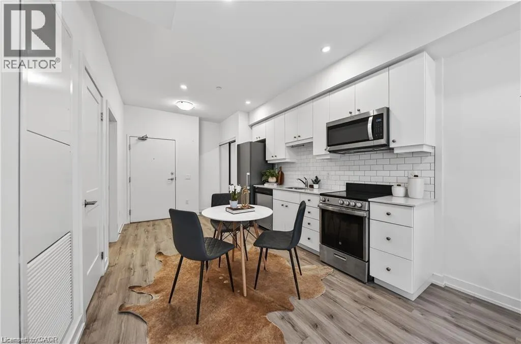 Available MAY 1st! Discover low-maintenance, modern living in the heart of Waterloo. Unit 210 at the Blackstone is a bright, airy 1-bedroom, 1-bath condo offering 573 sq ft of comfortable space. Tall ceilings and built-in blinds enhance the open-concept layout. The kitchen is equipped with stainless steel appliances, durable stone countertops and a contemporary tile backsplash, flowing into the cozy