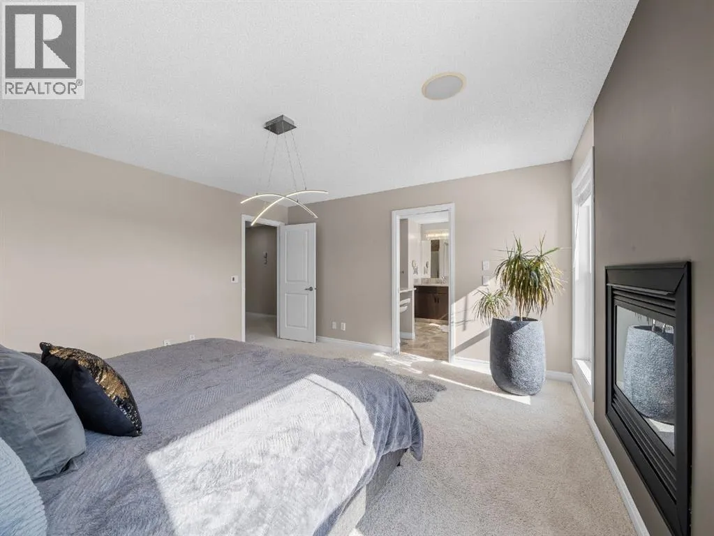 lead to the second floor, while a generously sized flex area offers the versatility to suit any family’s needs. The kitchen is a chef’s delight, featuring dark stained cabinetry, a gas range, quartz countertops, a walk through pantry and a breakfast bar for casual dining. It flows seamlessly into the spacious dining area and inviting living room, both perfectly positioned along the back of the home where an impressive wall of windows captures sunlight throughout the day. The living room serves as a cozy focal point, centered around a beautiful gas fireplace. From the dining area, glass doors open onto the expansive southeast facing deck, overlooking the sprawling backyard, an ideal setting for outdoor dining, entertaining guests or simply enjoying the sunshine and open space. Upstairs, the thoughtful layout continues with a blend of comfort and functionality. Across from the stairwell, a charming seating nook with a built-in bench and an elegant arched window creates a perfect reading escape. Just beside it, a compact workspace provides a practical area for studying or working from home, while a conveniently located laundry room adds everyday ease. This level also features two generously sized bedrooms, one of which is highlighted by an oversized window that fills the room with natural light, along with an additional 4 piece bathroom. At the center of the upper floor is a spacious bonus room overlooking the soaring open to above foyer, offering a bright and airy gathering space for the whole family. The impressive primary suite serves as a private retreat, complete with its own gas fi replace. The spa-inspired ensuite features his-and-hers vanities with quartz countertops, a dedicated makeup station, a corner soaker tub, and a large walk-in closet. The fully finished basement expands the living space further, offering a large recreation room perfect for movie nights or a home gym, along with an additional bedroom and full bathroom for guests or extended family. The home is equipped with a built-in sound system with in-ceiling and outdoor speakers, plus a tankless water heater installed just three years ago. Ideally situated, this home is within walking distance of Holy Child School (K–9), close to Ron Southern School (K–6) and Complexe scolaire francophone de Silverado (a Francophone school Grade K–12)., making the morning routine a breeze for families. A short drive brings you to the Somerset LRT Station, the YMCA, Spruce Meadows, and Shawnessy Plaza, with quick access to Stoney Trail for an easy commute. (id:62650)