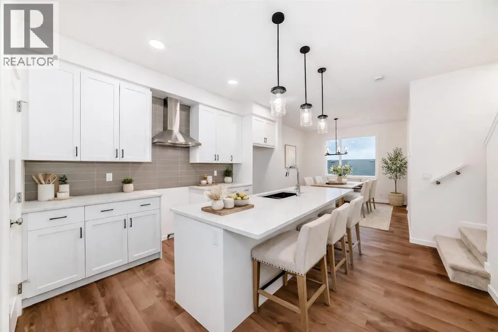 on paper but rarely earn their keep.The main floor is centred around a kitchen designed for real daily life. QUARTZ COUNTERTOPS, 42″ UPPER CABINETRY, a CHIMNEY HOOD FAN, and a BUILT-IN MICROWAVE keep the space functional and clean-lined, while the island becomes the natural landing spot for coffee, laptops, groceries, and the conversations that happen in between. The dining and living areas flow easily from there, creating a main floor that feels open without wasting square footage.Upstairs keeps the same practical approach. Three bedrooms, two full bathrooms, and upper laundry give the home a layout that works the way most households actually live. The PRIMARY BEDROOM includes a WALK-IN CLOSET and PRIVATE ENSUITE, while the secondary bedrooms offer flexibility for family, guests, or a dedicated home office.Where this home quietly sets itself apart is downstairs. The 9’ BASEMENT WITH A SEPARATE SIDE ENTRY is already set up for the future with plumbing rough-ins, laundry rough-ins, and a bar sink rough-in in place. Behind the scenes, the mechanical planning goes even further with 200-AMP ELECTRICAL SERVICE, an EV CHARGER ROUGH-IN, and a SOLAR CONDUIT running from the mechanical room to the attic—infrastructure decisions that make a home far more capable over time.Outside, a REAR DECK and TWO-CAR PARKING PAD off the lane keep things simple and functional today while leaving room for whatever the next phase looks like.Set in Rangeview, a southeast Calgary community planned around tree-lined pathways, connected parks, and calm residential streets, with quick access to Seton, Mahogany, Deerfoot Trail, and Stoney Trail. If you’re stepping in to the market for the first time—or looking for a property that makes long-term sense as a rental—this one is worth seeing in person. Ready to call home in April!• PLEASE NOTE: Photos are of a DIFFERENT of the same model – fit and finish may differ on finished spec home. Interior selections and floorplans shown in photos. (id:62650)