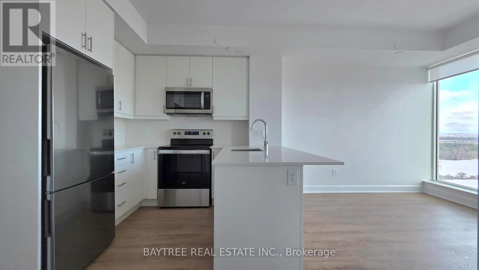 Stunning Brand New 1 Bed Condo Never Lived In! Welcome to this beautifully upgraded, modern condo featuring a spacious and sun-filled open-concept layout. Enjoy laminate flooring throughout, ensuite laundry with washer and dryer and 1 convenient parking space. Located in a highly sought-after area, this unit offers exceptional building amenities including a fitness center, media lounge, yoga and movement studio,