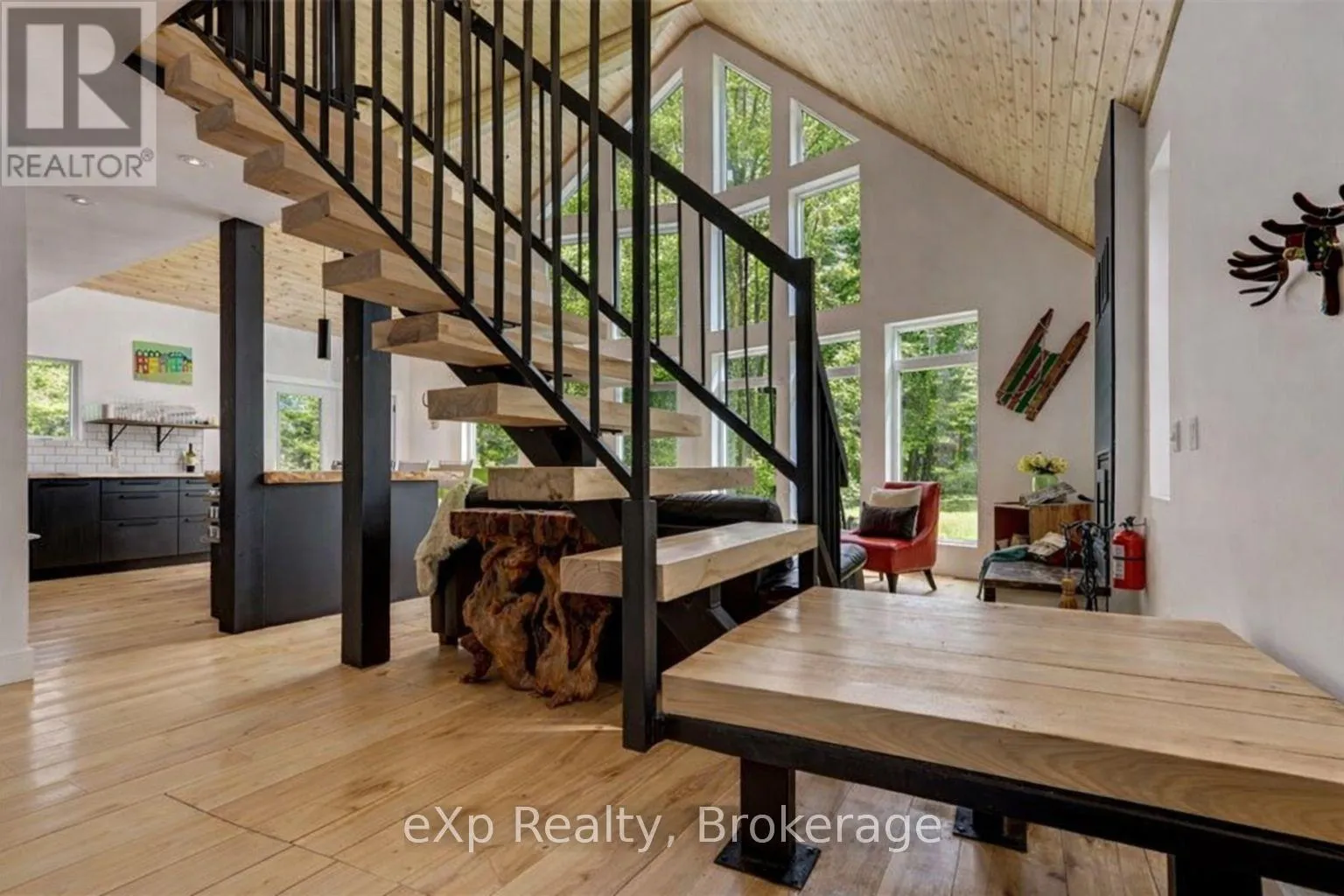 Experience the rare luxury of complete privacy & natural beauty with this exceptional custom-built 3-bedroom residence set on over 137 acres of pristine landscape. Thoughtfully designed to blend comfort with nature, the home features expansive windows that flood the interior with natural light while highlighting the rich hickory hardwood flooring & spacious open-concept design. At the heart of the home,