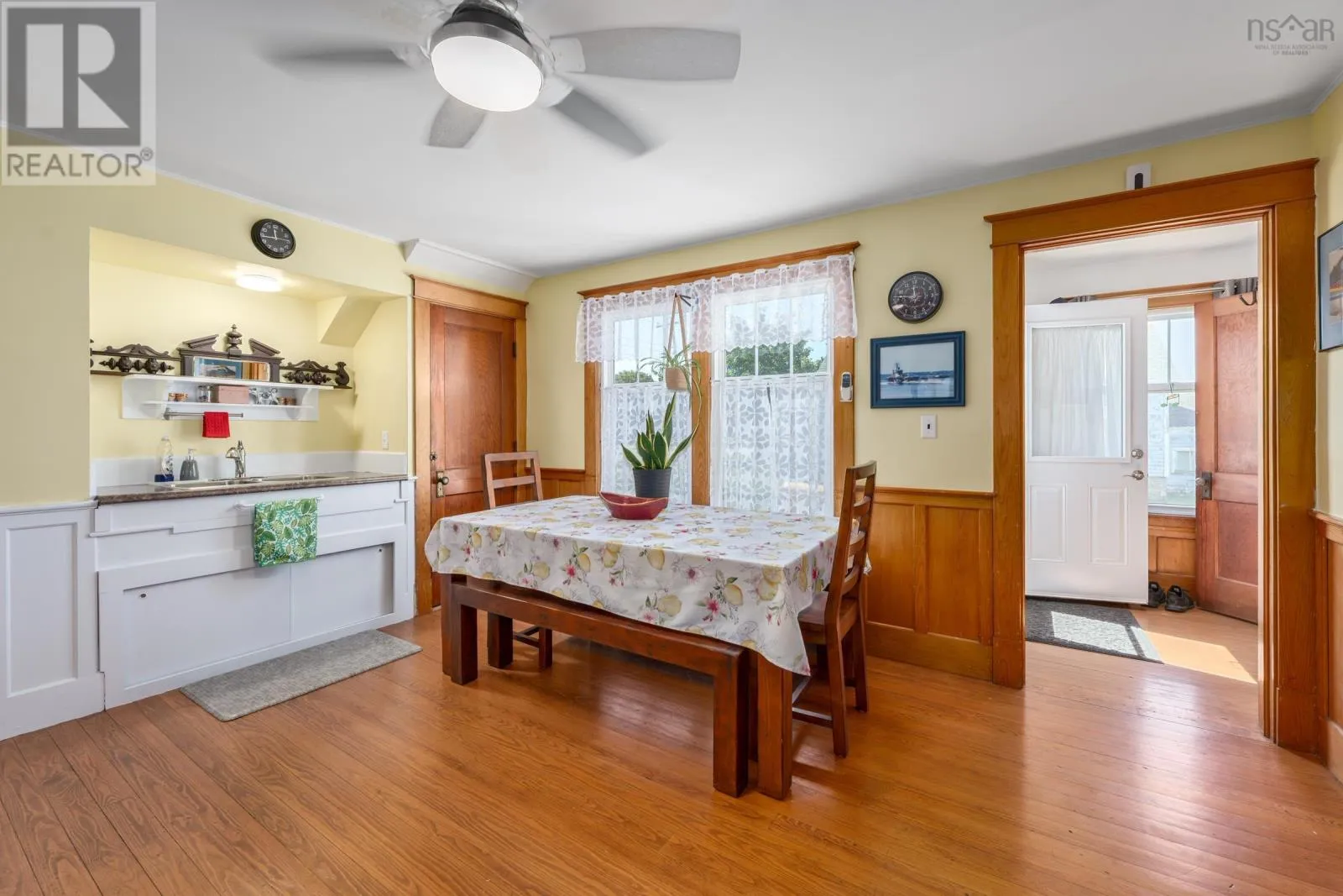 OCEANFRONT LIVING ON ST.MARY’S BAY. This classic 3-bedroom, 2-bath home captures the charm of a period residence while offering bright, open spaces and stunning ocean views. Set on 2.5 landscaped acres that gently slope to the shoreline, the property delivers the true Nova Scotia coastal experience. The main floor features sun-filled living/dining area with French doors leading to a massive