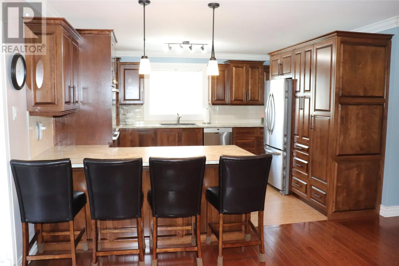 This stunning 5 bedroom, 4.5 bath two storey home with triple bay 40 x 26 garage, walk out basement and beautifully landscaped lot is built to R2000 standards and is a MUST SEE! The back deck leads into the sunroom which is located off a dream kitchen with cognac stained birch cabinets, lots of counter space, stainless steel appliances