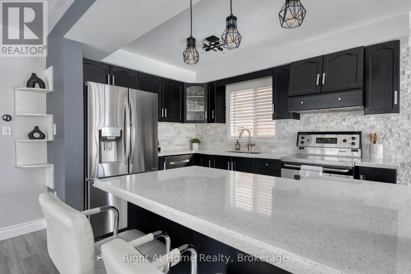 Gorgeous and immaculate freehold end unit link home located on a pie shaped lot siding onto forrest. This open concept split level has been thoroughly updated from top to bottom. The new front door, new quality tiles in the foyer and all upgraded stairs & spindles is sure to impress. The modern kitchen showcases stainless steel appliances, lots of counter