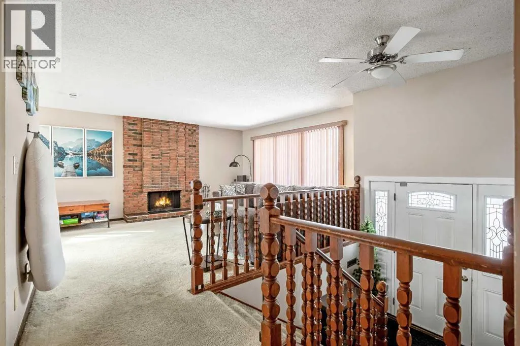 Large bilevel located on a quiet street just steps from Fish Creek Park. Ideal for a large or growing family, this home offers 5 bedrooms (3 up, 2 down) and 3 full bathrooms, including a 3-piece ensuite.The main level features a spacious kitchen with oak cabinets and eating area, with a back door leading to a large deck overlooking the