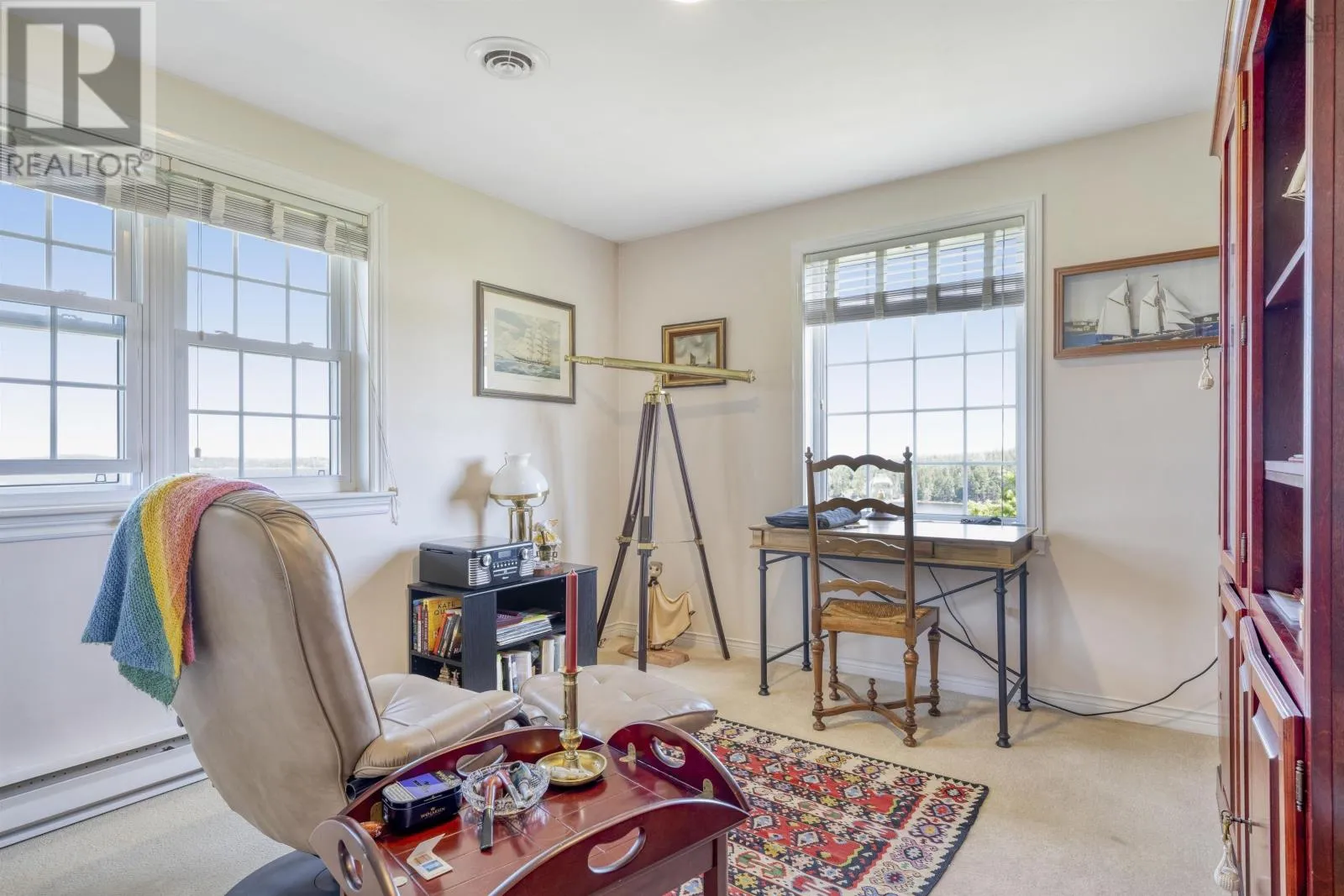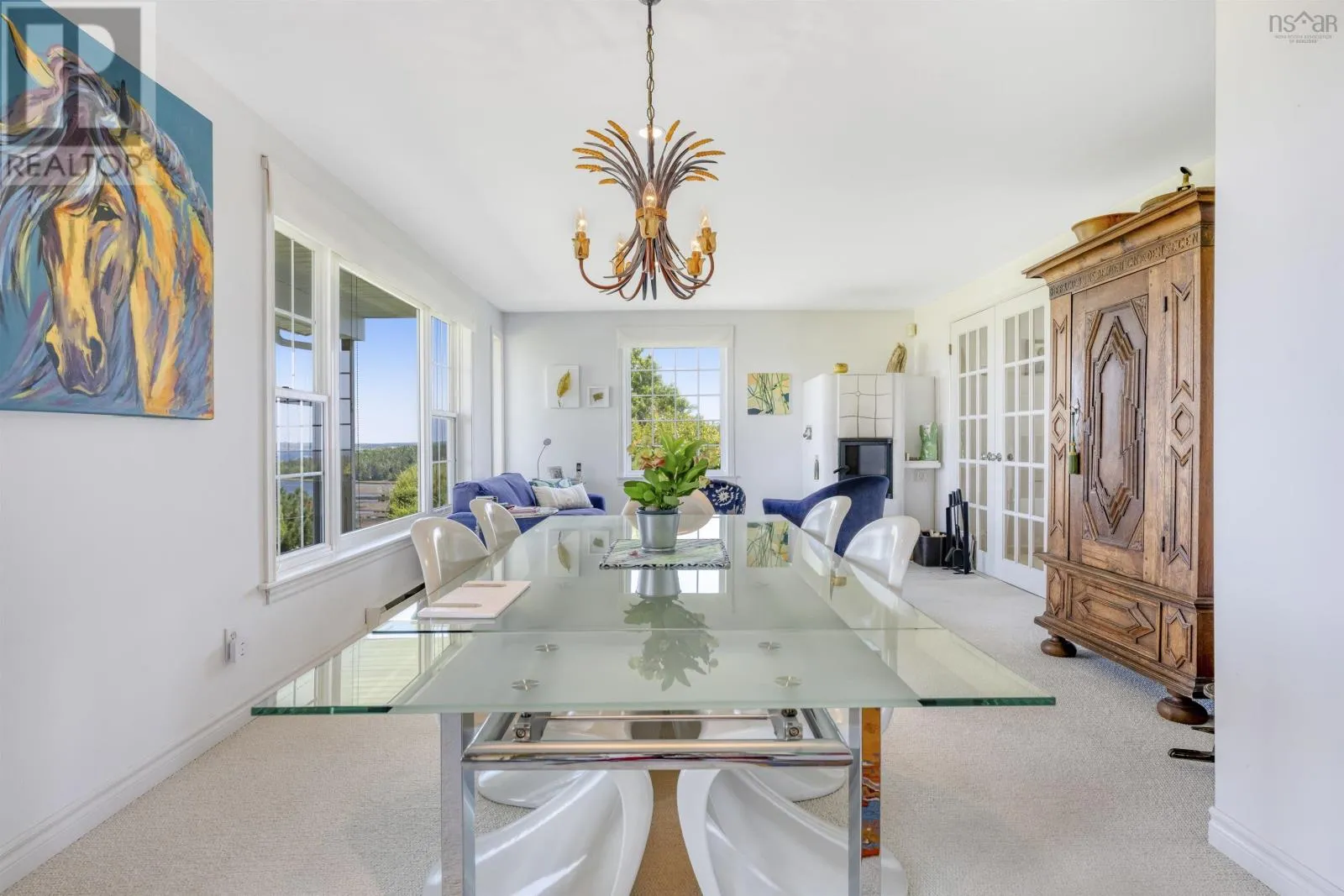 There is a house on a green hill with stories to tell. Of meals on a deck overlooking the sea, the Bluenose sailing by, sunrises and sunsets to see, and moonlit nights with deer playing around. With a 270 degree outlook to historic Lunenburg all the way to Blue Rocks, these three acres are the very definition of a spectacular
