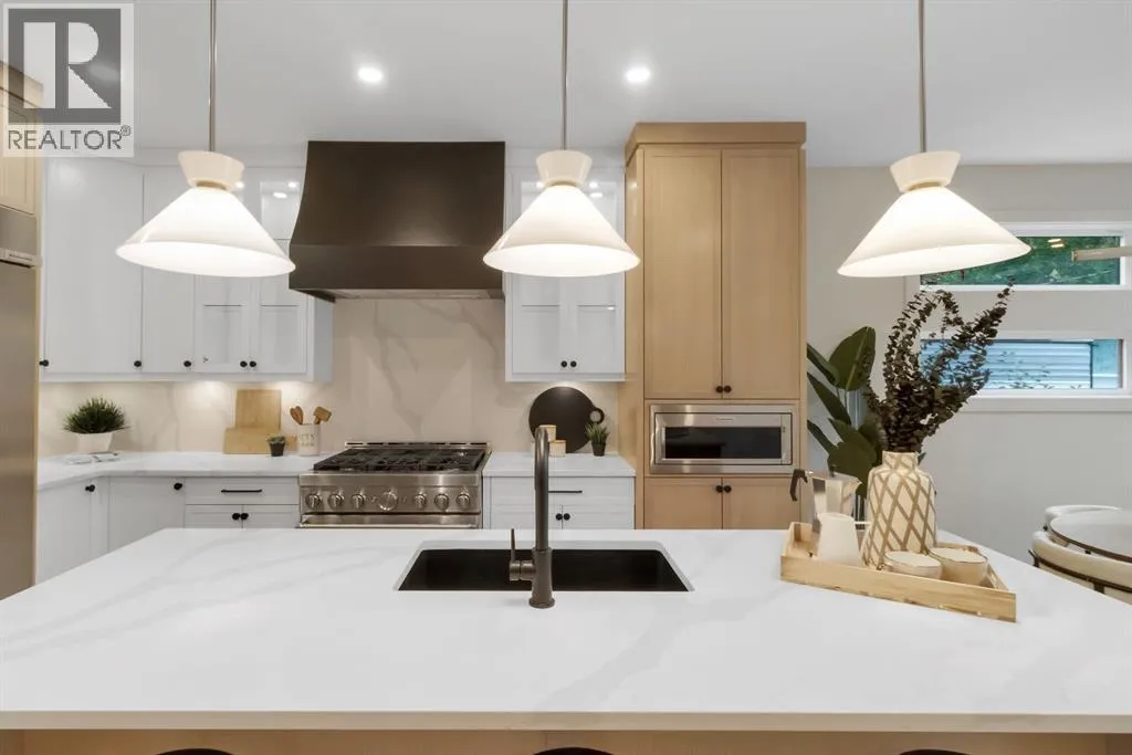 Welcome to this exceptional modern home nestled on a quiet, mature street in the heart of desirable Banff Trail, with a charming park right at your doorstep. Boasting over 3,800 square feet of thoughtfully designed living space across four levels—and serviced by a private elevator—this home seamlessly blends contemporary luxury with everyday comfort. Step into the elegant front den, where