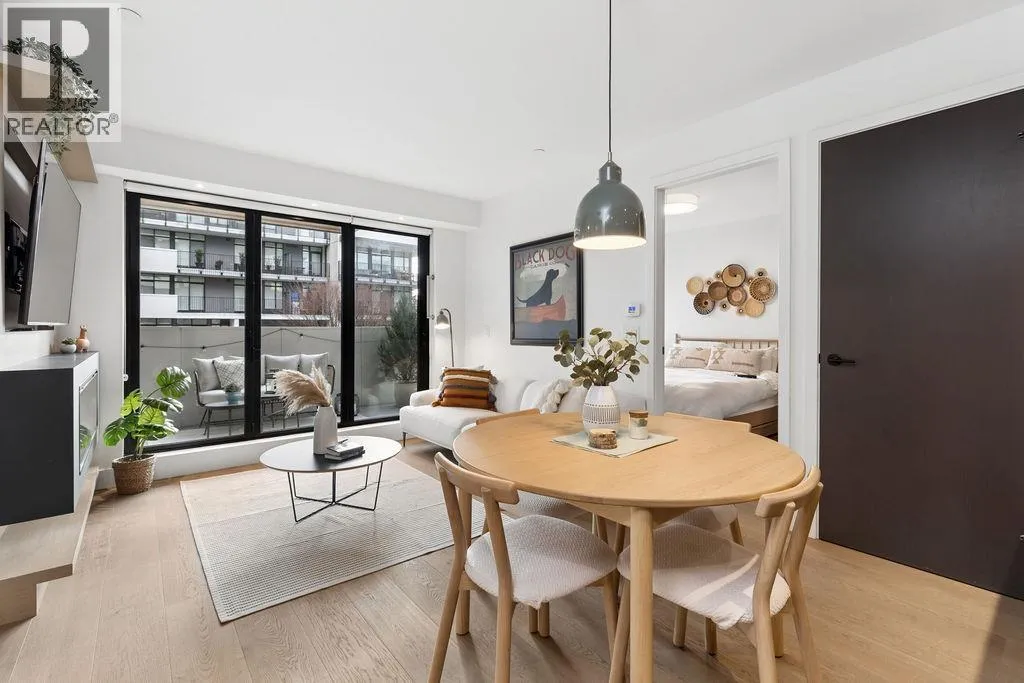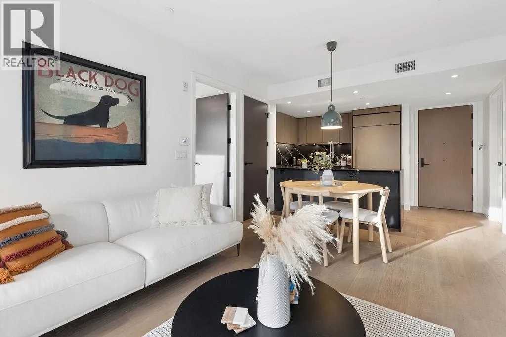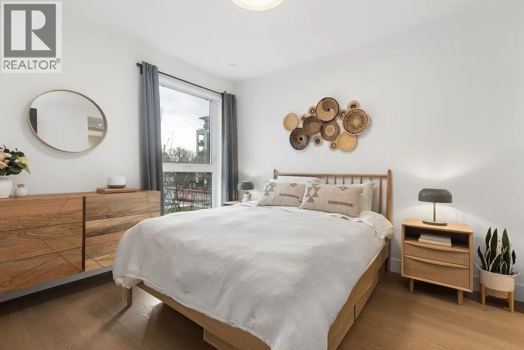 Welcome to this BRIGHT & REFINED 2-BED + DEN, 2-bath home near Riley Park in SHIFT by Aragon. Light-filled open concept layout with premium finishes, expansive windows & OVERSIZE BALCONY & AIR CONDITIONING. Chef-inspired kitchen with MONOGRAM APPLIANCES, sleek cabinetry, quartz counters, oversized island & counter seating. High quality engineered wood floors & CUSTOM MILLWORK throughout with ample storage. Seamlessly
