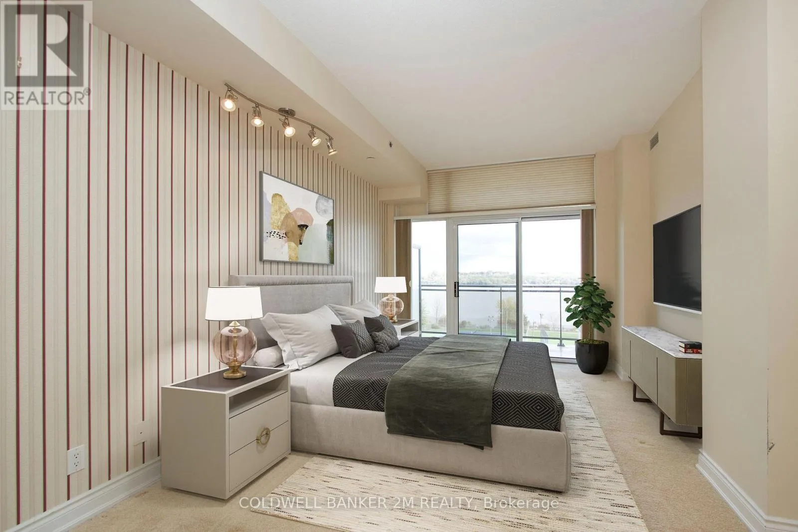 Please welcome to market this charming Penthouse condo unit with unobstructed FULL views of Lake Scugog and Downtown waterfront area. 2 bedroom plus separate den. 2 walkouts to large balcony with plenty of seating area to entertain or relax to the gorgeous view. 9 ft ceilings throughout, Primary bedroom has plenty of space and includes both W/I closet and 4pc