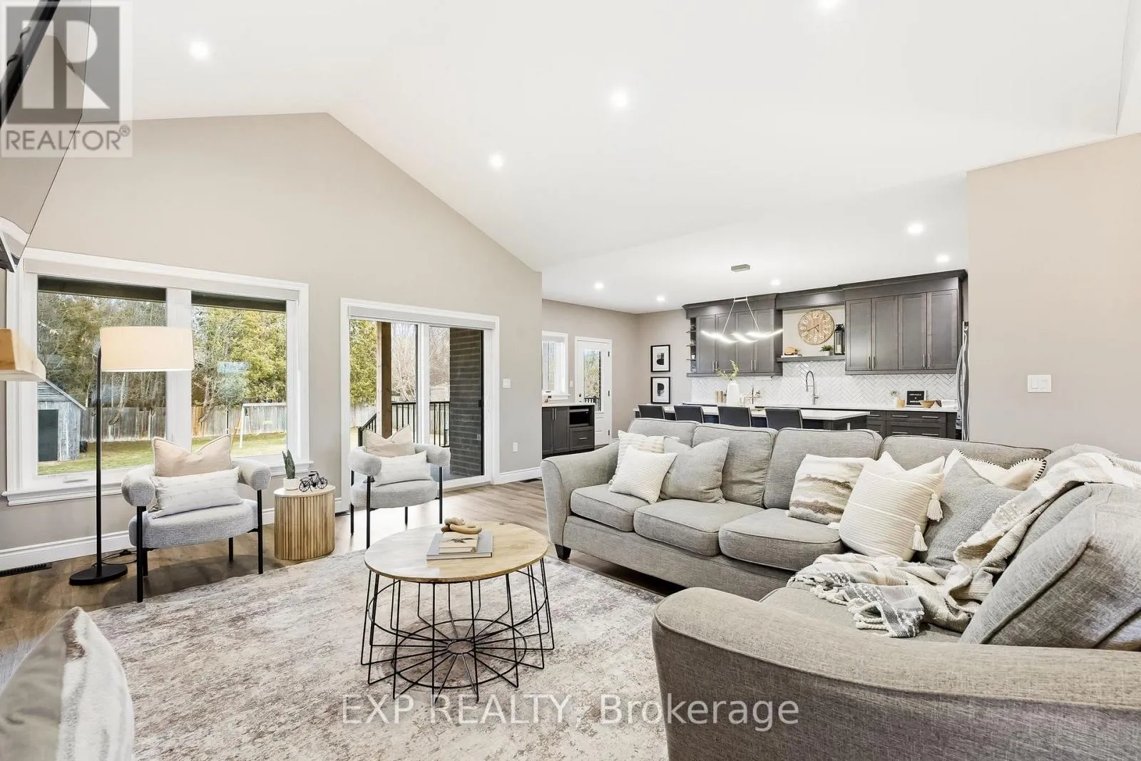 Set on a large fenced corner lot with a quiet rural feel just minutes to town, this brick bungalow offers 3+1 bedrooms, 4 baths, and the breathing room, finish level and flexibility buyers rarely find in one package. The main floor offers approx. 2,483 sq ft per MPAC, soaring vaulted ceilings, a stunning open-concept living room, a gas fireplace with