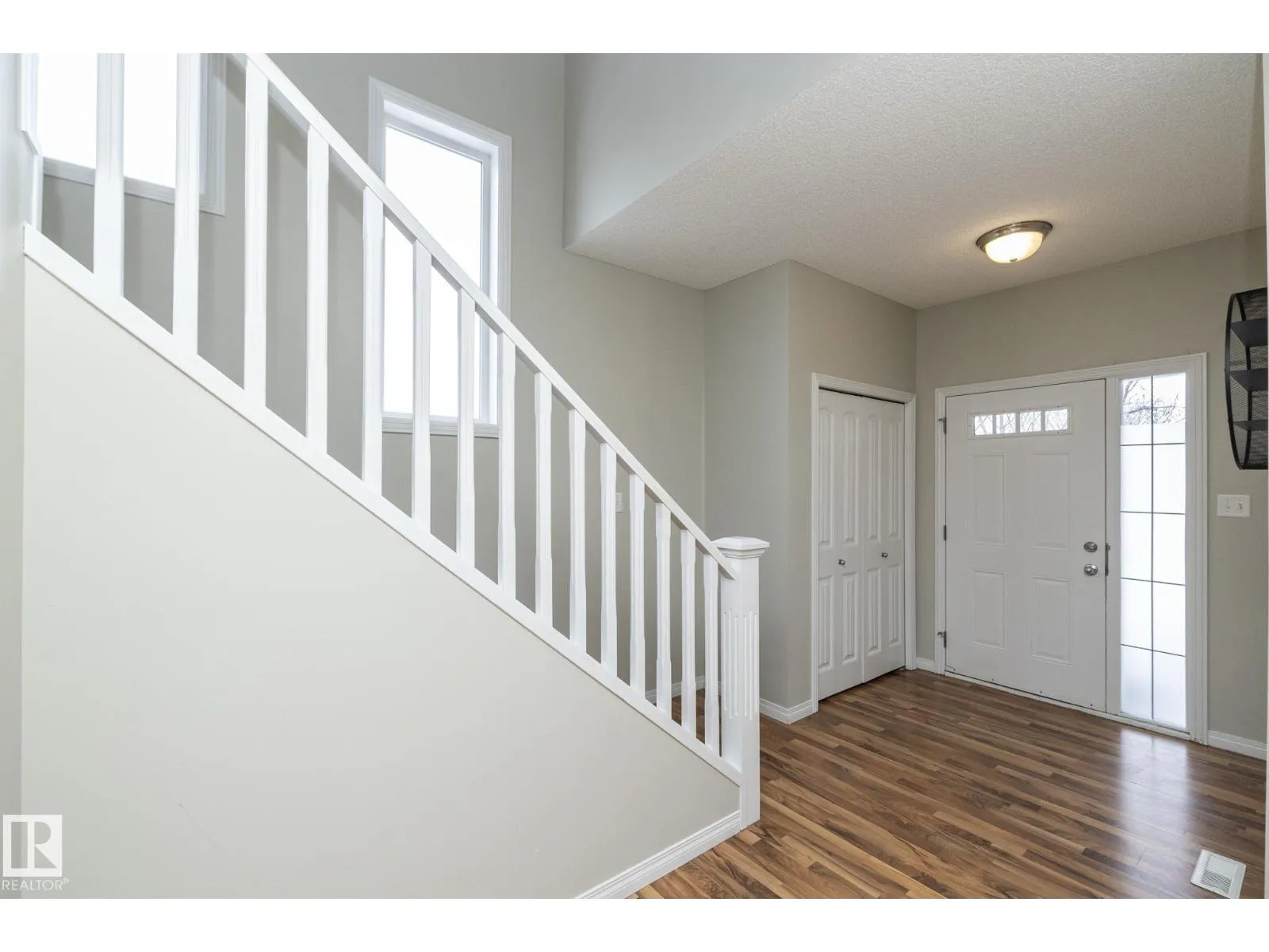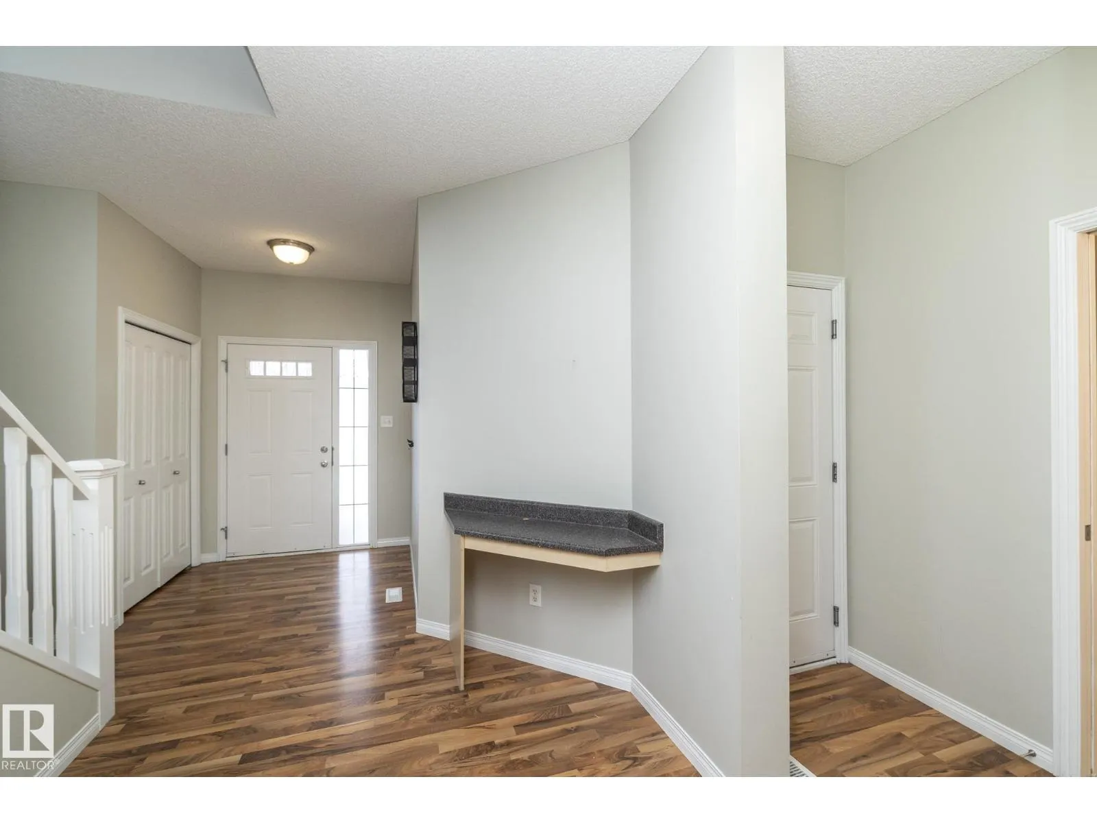 Welcome to the vibrant community of Rutherford. This stylish half duplex offers a fantastic opportunity with NO CONDO FEES and a smart, functional layout. The spacious front foyer provides access to the attached garage, a convenient two-piece bathroom, and a built-in desk ideal for a home office. The open-concept main floor features a bright kitchen with maple cabinetry, modern paint