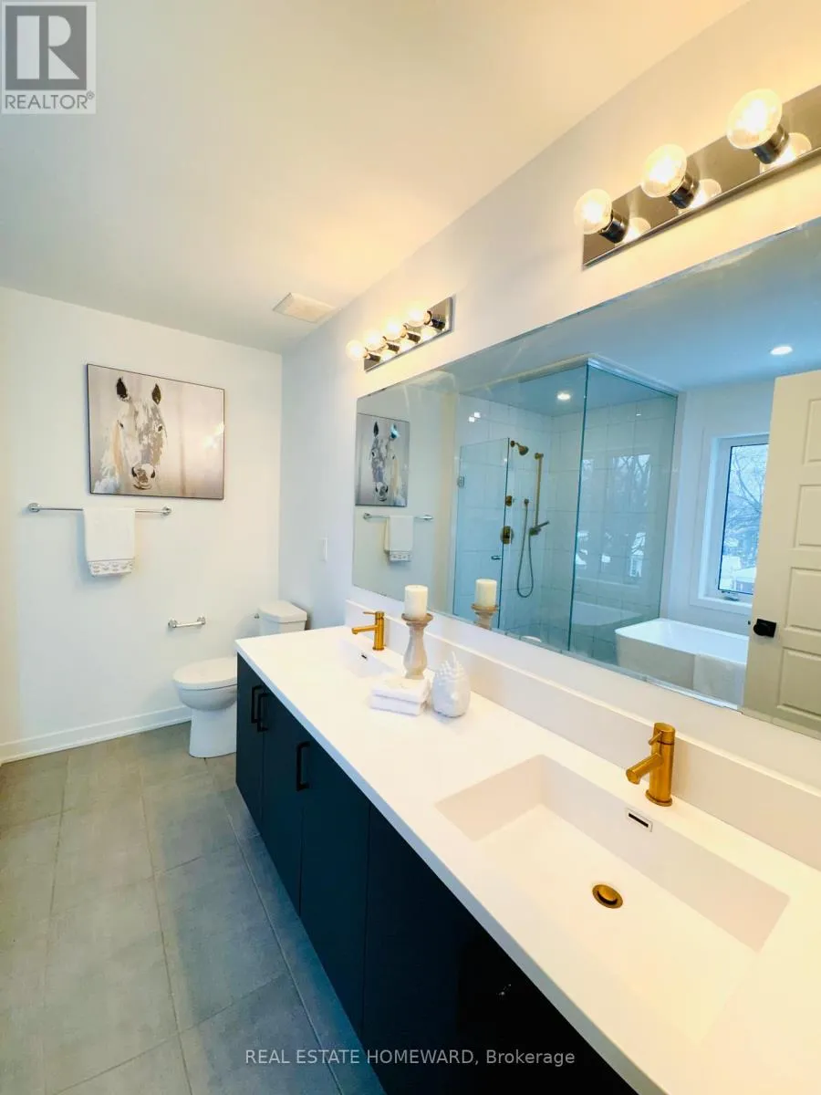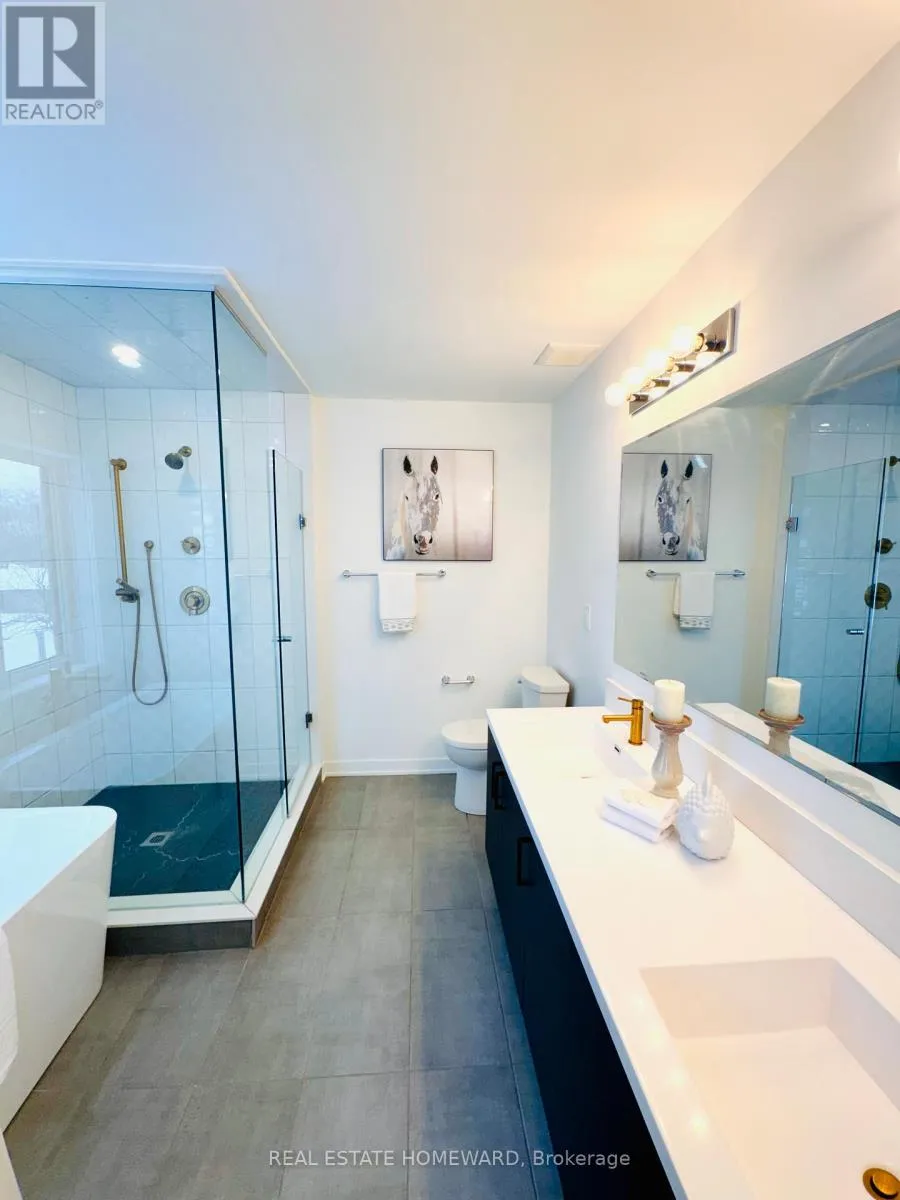 This stunning two-year-old, double-story detached home at 30 Frank Lloyd Wright Street represents the pinnacle of modern luxury in Whitby, boasting nearly $100,000 in meticulous designer upgrades. The open-concept interior is anchored by a breathtaking living room feature wall with an integrated fireplace, leading into a chef’s masterpiece kitchen outfitted with Level 5 “Eternal Statuario” quartz and a dramatic waterfall