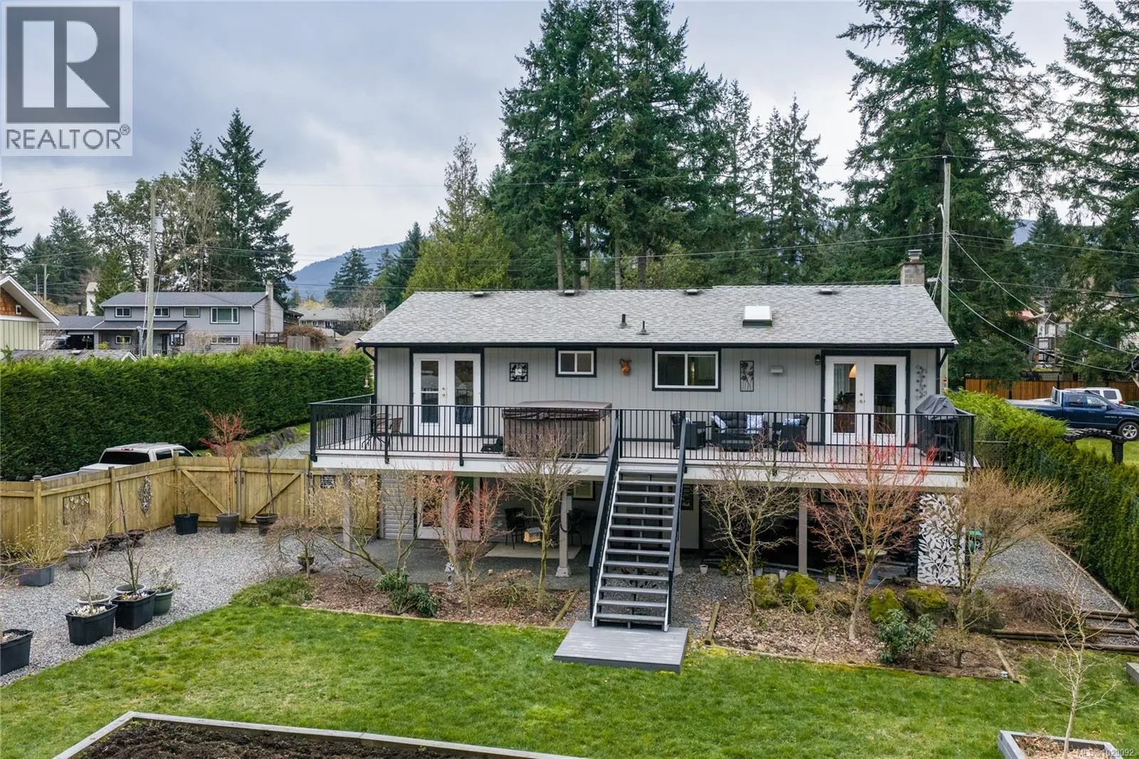 Backing onto Diver Lake Park on a quiet side street, this immaculate home sits on a third of an acre and offers lake views. The main level features three bedrooms, a four piece bathroom, and a bright kitchen with abundant cabinetry and three stainless appliances. The expansive back deck with hot tub is the perfect place to relax while enjoying