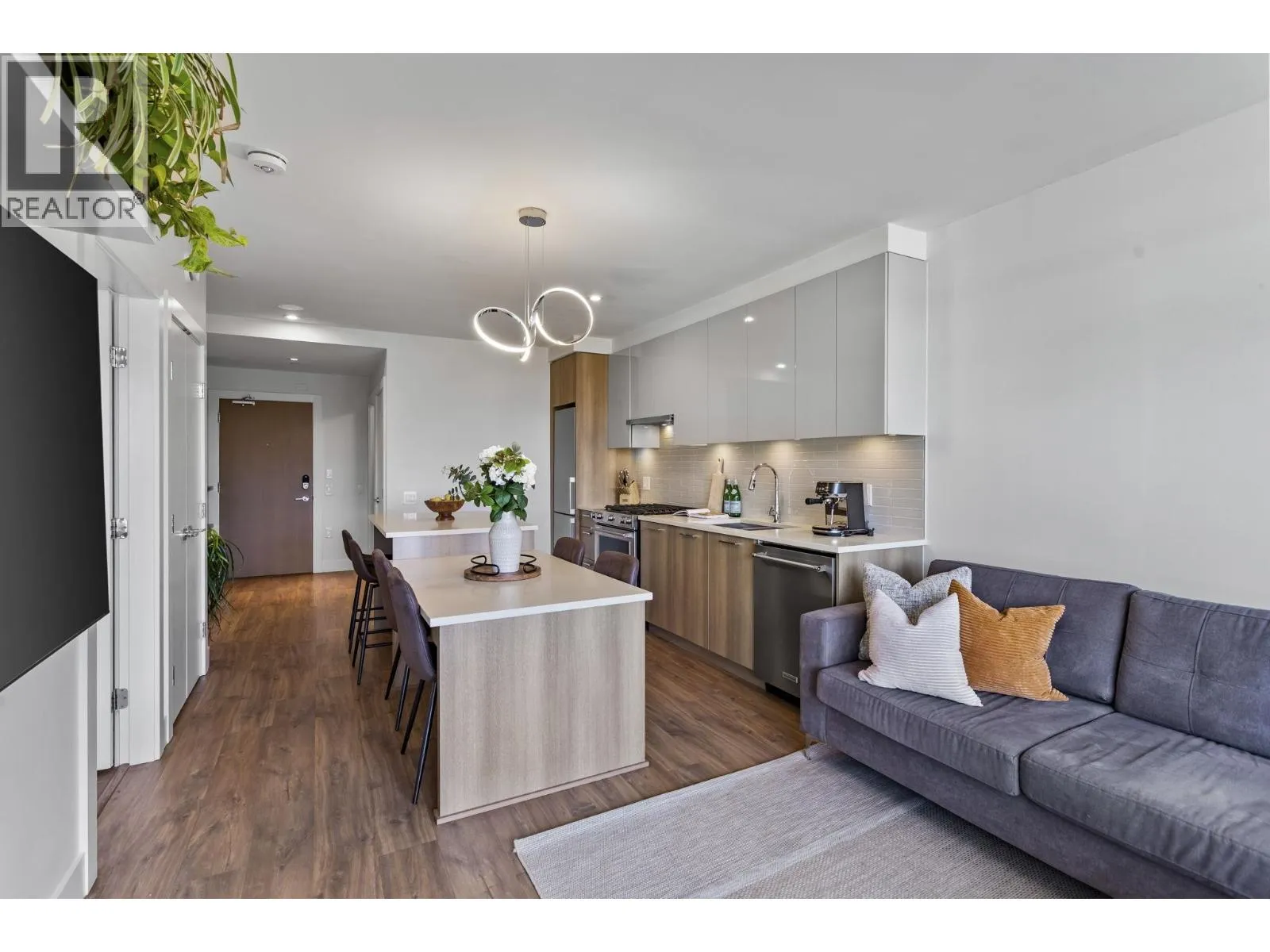 Welcome to this bright and super functional 1 bed + den home at The Columbia by Wesgroup in the vibrant Sapperton neighbourhood of New Westminster. This move-in ready home features an open layout with a spacious living area leading to a 100+ square ft covered patio on the quiet side of the building with city views. Modern kitchen with quartz