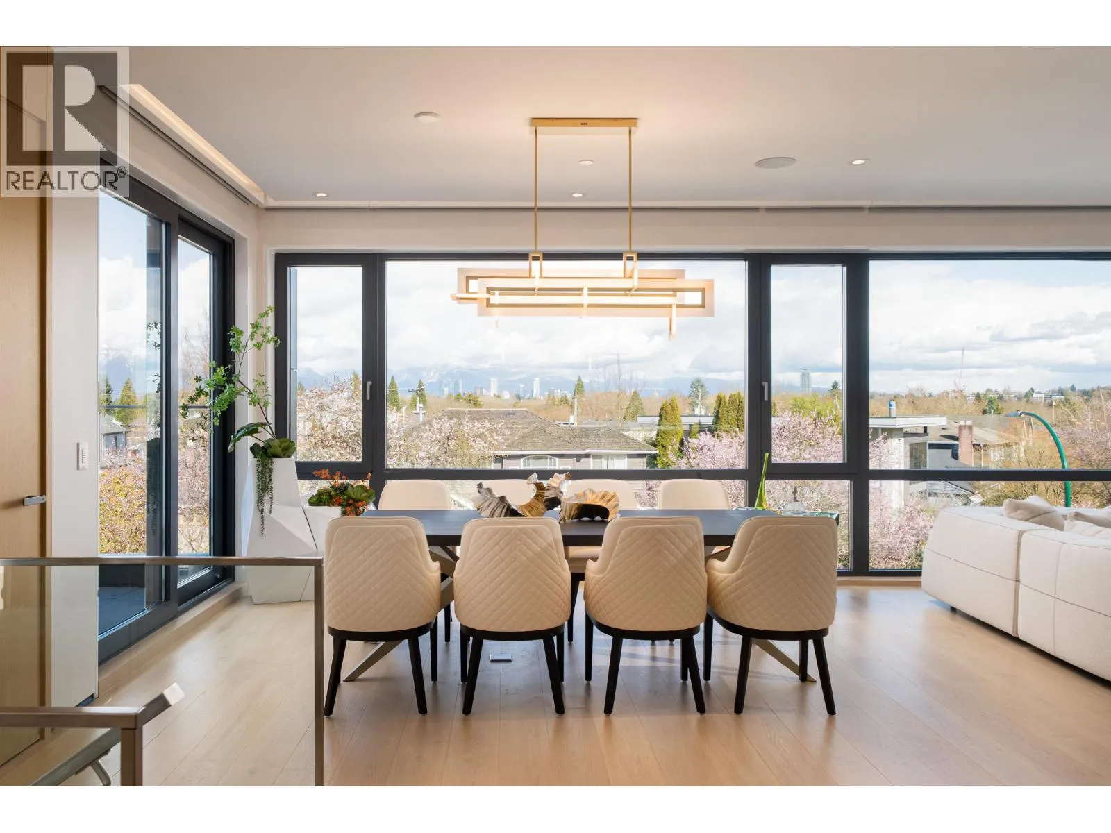 Panoramic VIEW mansion. This modern residence showcases the finest design, materials, and craftsmanship. Aluminum, glass, & Euro-tile exterior; open-concept interior-bright and airy with floor-to-ceiling triple-glazed windows, floating staircase, stainless-steel kitchens. The master suite faces the tranquil backyard garden with its own spa & a huge walk-in closet. The basement boasts a professional movie theatre, a wine cellar, & a large