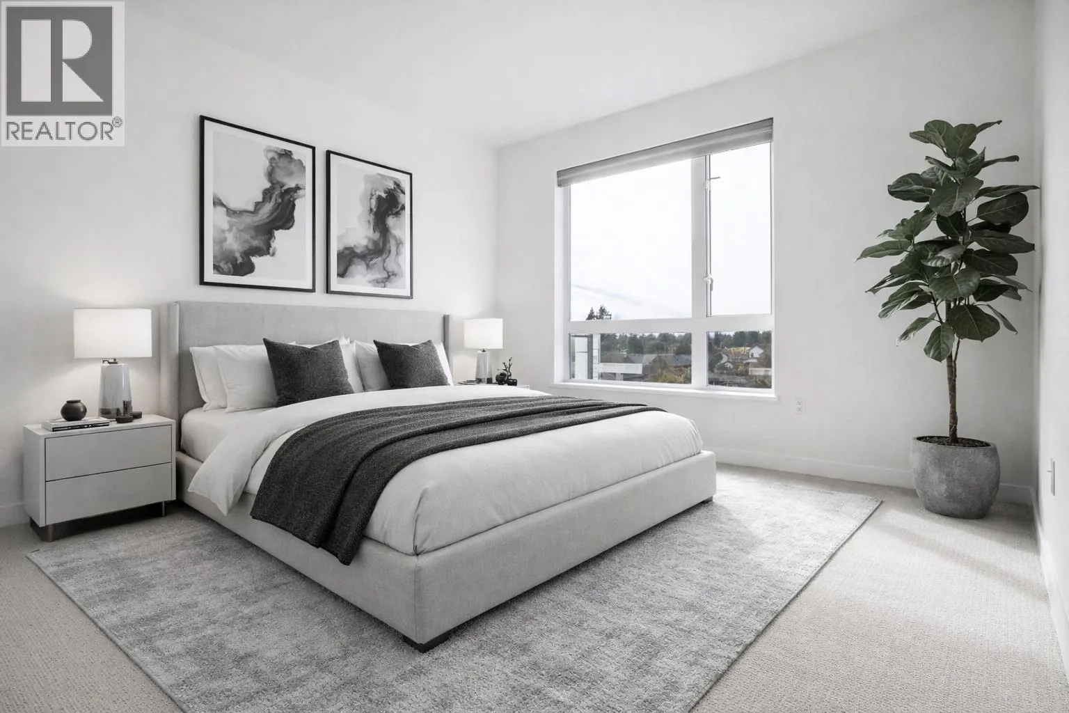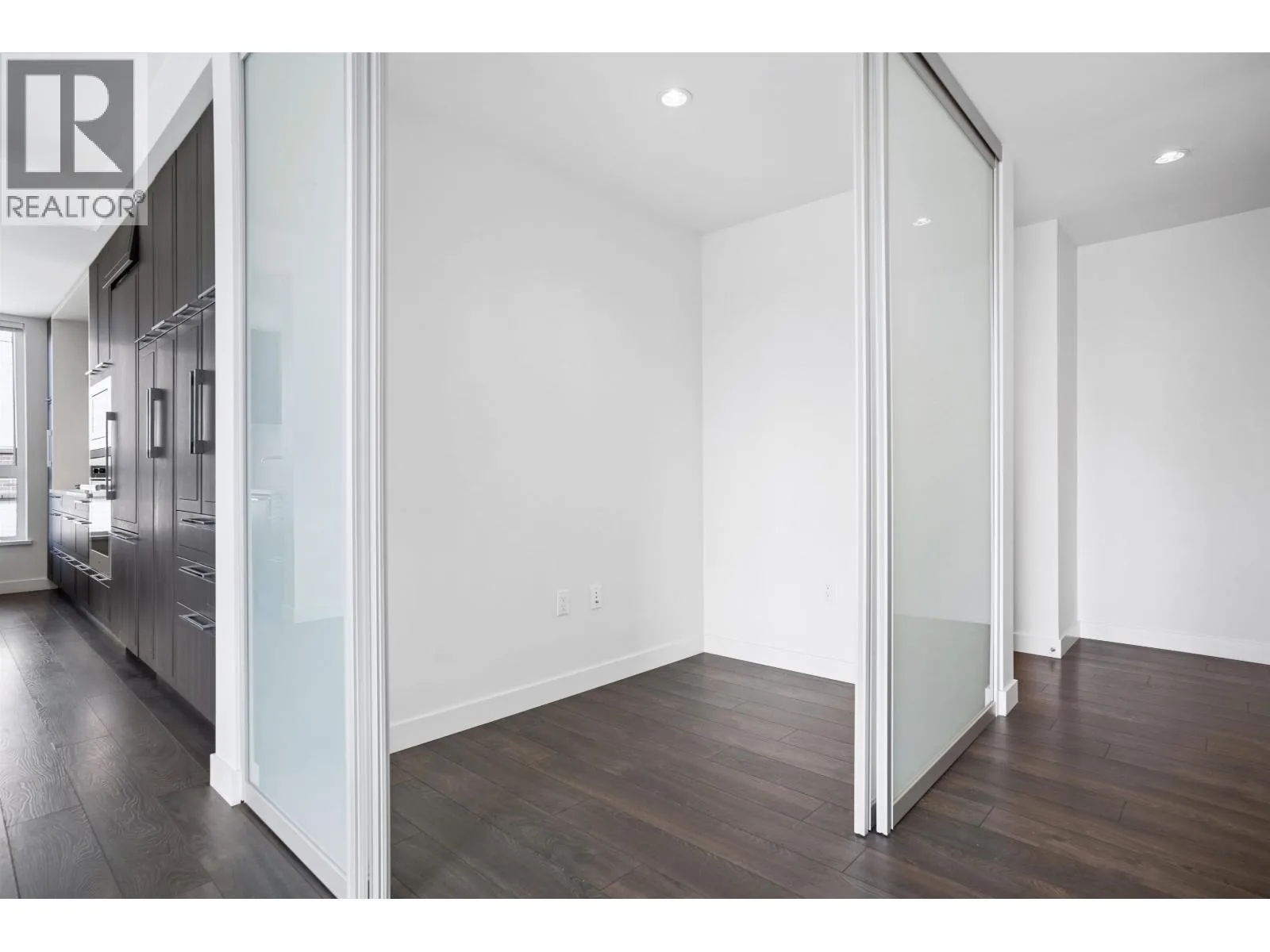 CAMBRIA BY MOSAIC HOMES! Oversized, 1,219SF corner 2 bedroom and den home with wrap around balcony. The gourmet kitchen feature sleek, integrated appliances, custom floor to ceiling cabinetry and stone counters, and flows on durable laminate flooring into the open concept dining and living room. Appreciate large windows that invite natural light and peaceful tree-line views, over-height ceilings and a