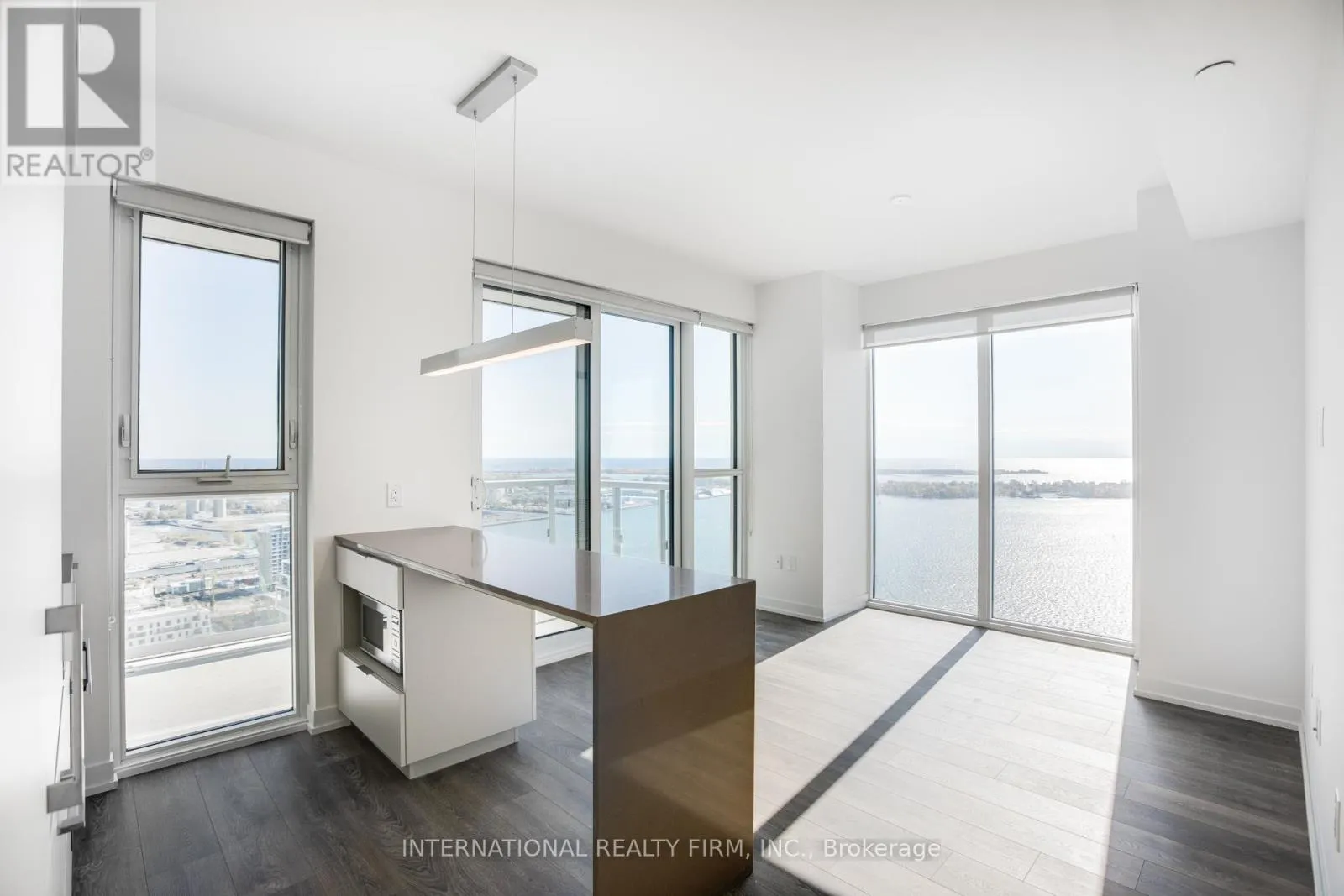 Incredible 2 bed 2 bath condo on the 32nd floor south facing the Water! Incredible panoramic views of the lake and City!!! Large 190 sqft balcony. Comes with 1 parking, 1 locker and furnishings as shown in the photos. Walking distance to grocery stores, restaurants, bars, public transportation and Sugar Beach. High end modern kitchen with premium Miele appliances and