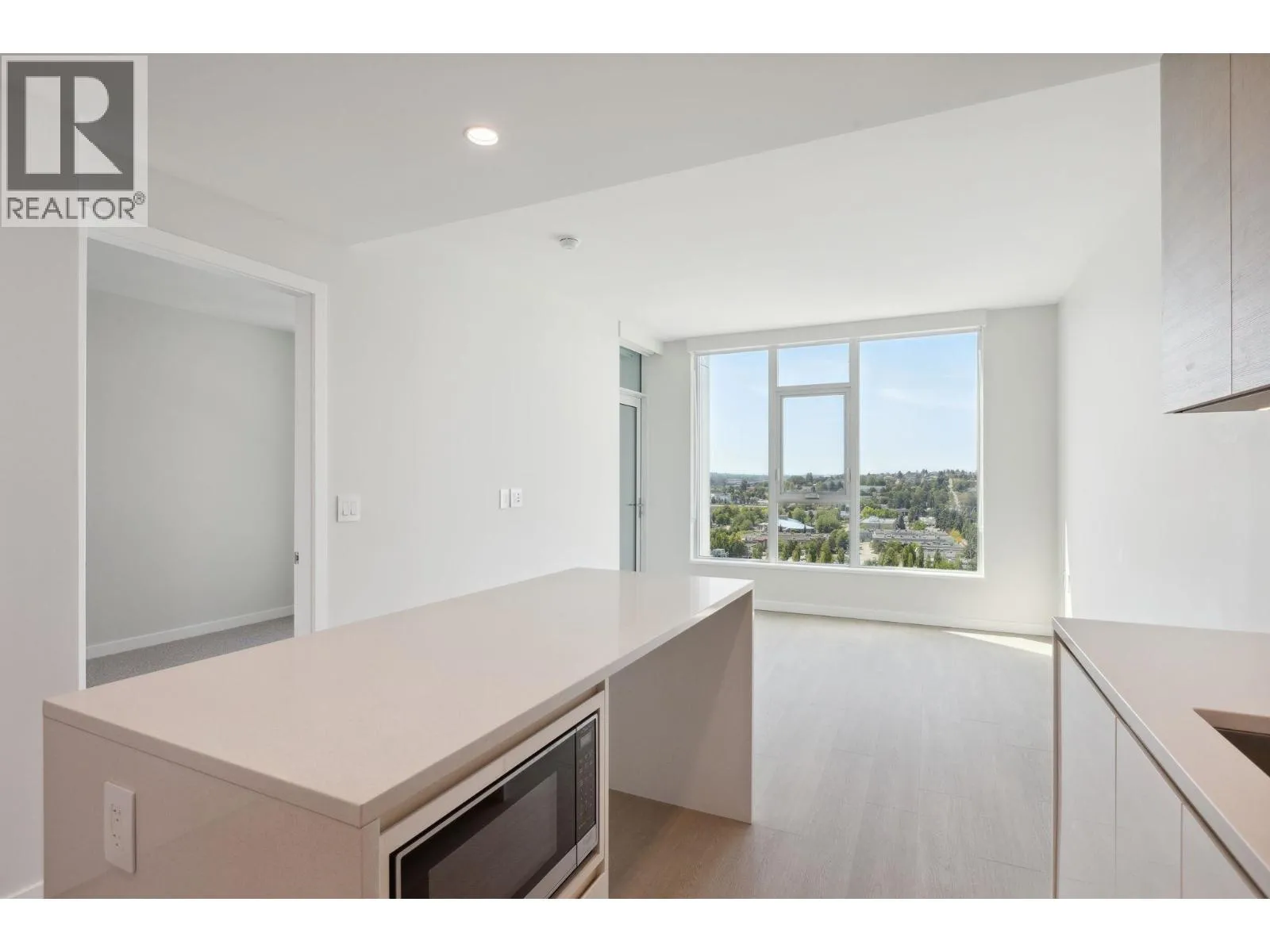 GILMORE PLACE BY ONNI. Almost new Jr. 2 bedroom, 2 bathroom home with expansive western city, mountain and water views and AC! The chef’s kitchen features sleek Italian, integrated appliances, two-tone cabinetry and oversized island which includes seating for four! The principal suite accommodates a king sized bed and boasts a walk in closet and ensuite with marble tiling and