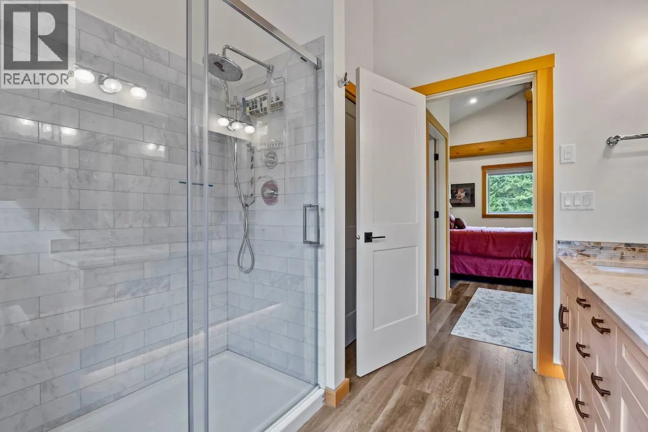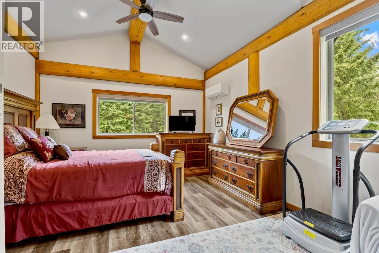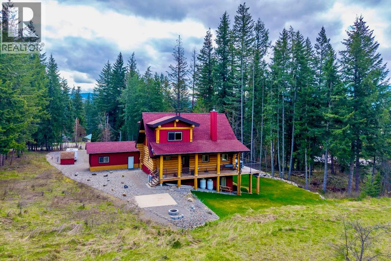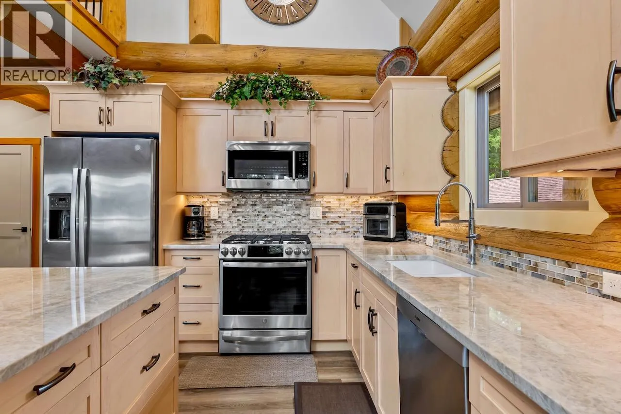 This exceptional 2271sq.ft. custom built log home was crafted by the Shuswap’s renowned North American Log Crafters in partnership with Launch Construction. Nestled in a serene setting with lake and mountain views, this masterpiece blends timeless craftsmanship with modern comforts. Step inside to vaulted ceilings and an open-concept layout bathed in natural light, anchored by a floor-to-ceiling stone fireplace that