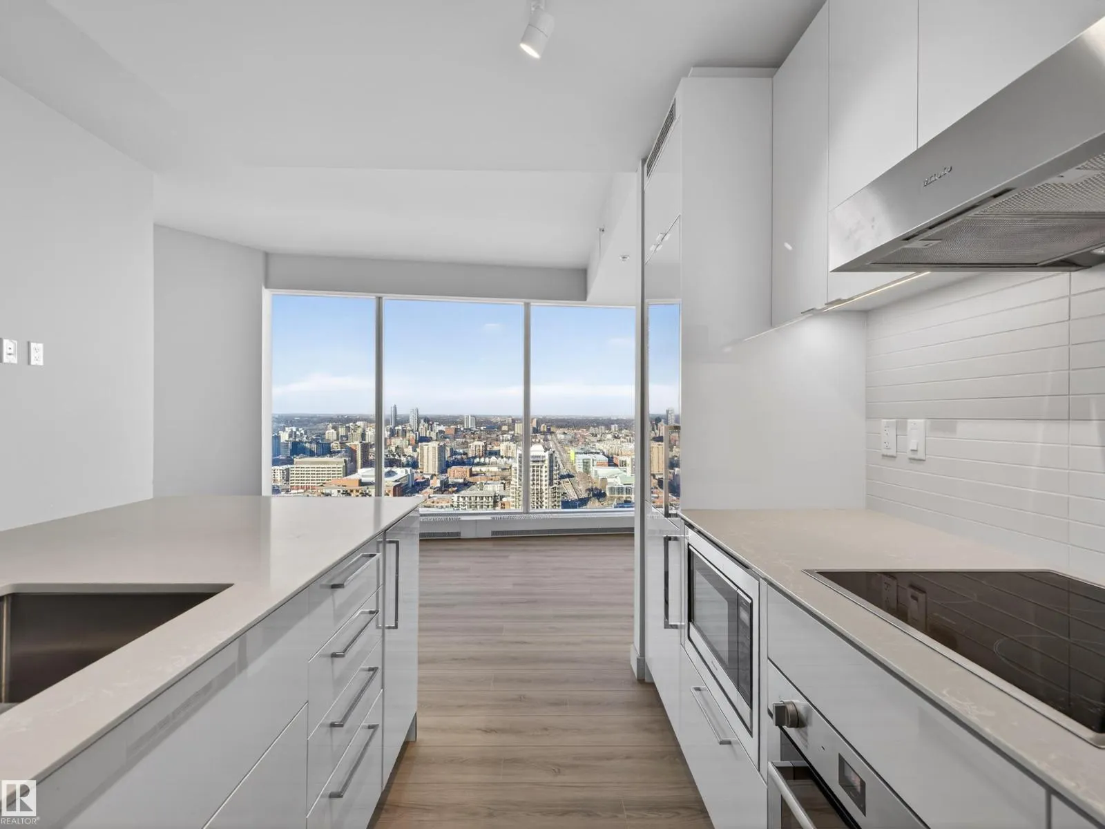 Welcome to The Legends Private Residences, located above the prestigious JW Marriott Edmonton ICE District in the heart of the vibrant ICE District. This stylish, move-in-ready 1 bedroom + den, 1 bathroom residence offers a sophisticated urban lifestyle with NEW engineered hardwood flooring (March 2026), floor-to-ceiling windows, in-suite laundry, and a private balcony showcasing beautiful west-facing sunset views. The modern