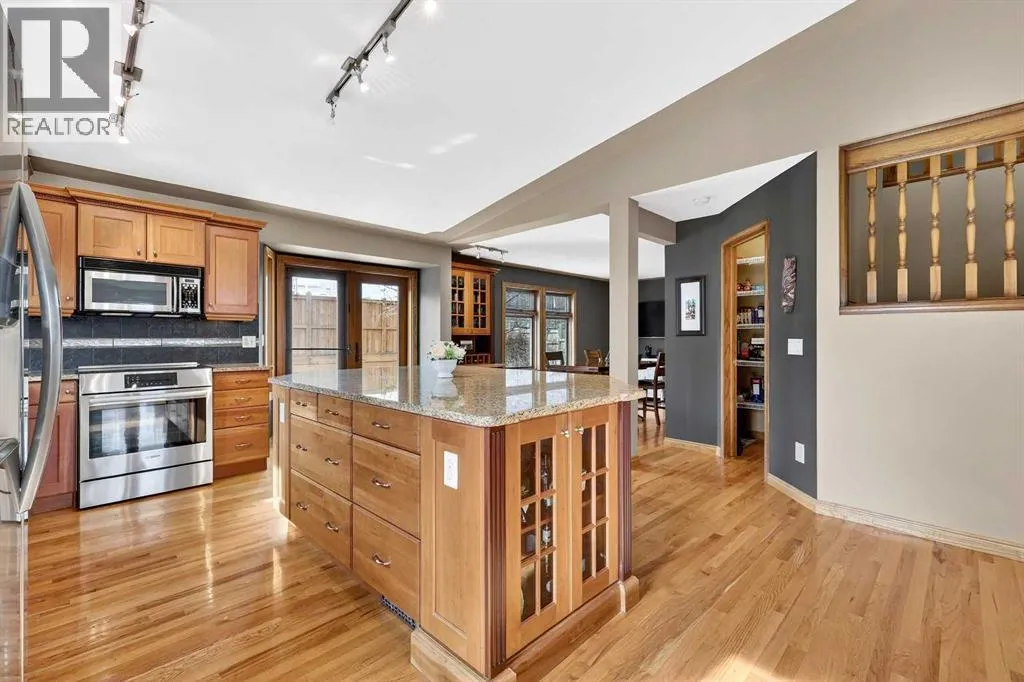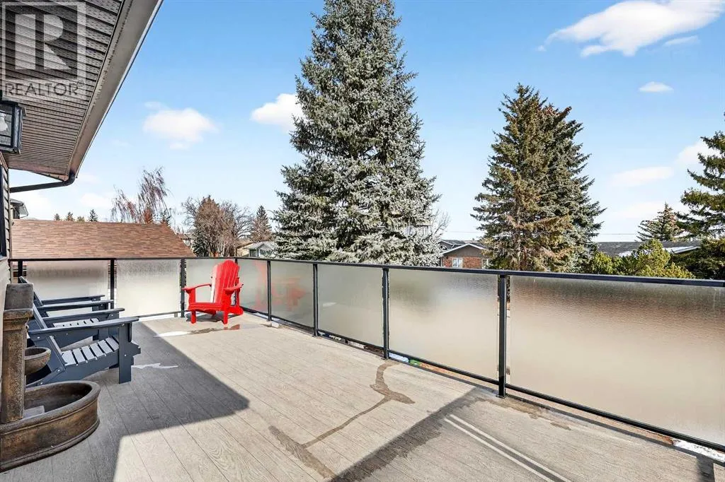 14th Street—perfect for families seeking both space and convenience. The main level welcomes you with soaring cathedral ceilings that create an open and airy feel throughout the main living areas. The bright living room is anchored by a cozy wood-burning fireplace, while the adjacent dining area flows seamlessly into the well-appointed kitchen. Designed with both functionality and entertaining in mind, the kitchen features granite countertops, new stainless steel induction stove, new stainless steel fridge, abundant cabinetry, and generous counter space. From here, step outside onto the composite deck and enjoy the beautifully maintained west-facing backyard, perfect for summer BBQs, outdoor dining, or relaxing in the sunshine. A truly unique feature of this home is the main floor illegal suite with its own private entrance, offering incredible flexibility for multi-generational living or a nanny suite. This self-contained space includes one bedroom, a full bathroom, kitchen with new white appliances, spacious living room, and a private terrace balcony, providing comfort and privacy for extended family or guests. Upstairs you will find three additional bedrooms, including a spacious primary retreat complete with a walk-in closet and 5-piece ensuite featuring a dual sink vanity, subway tile shower, and relaxing jet soaker tub. Two additional well-sized bedrooms are located near the 4-piece main bathroom, finished with modern touches including a rain shower. The fully developed basement offers additional versatile living space ideal for relaxing or entertaining. This level features a large family room with open space currently used as a billiards area, perfect for movie nights, games, or gatherings. A den currently used as a media/music room, a 3-piece bathroom, and a large laundry room with sink, built-in cabinetry, and ample storage complete the lower level. This home has had most of the windows replaced in 2024. Completing the property is the garage equipped with 220V power, ideal for workshop use, hobbies, or electric vehicle charging. The west-facing backyard serves as a private outdoor retreat, beautifully landscaped with mature greenery, garden beds, and a convenient storage shed for tools and outdoor equipment. Whether gardening, entertaining, or simply unwinding in the sunshine, this inviting outdoor space offers plenty of room to enjoy. With quality construction, a rare main floor illegal suite , and an exceptional location, this well-loved home presents a fantastic opportunity to own a spacious property in one of North Haven’s most established and sought-after communities. (id:64429)