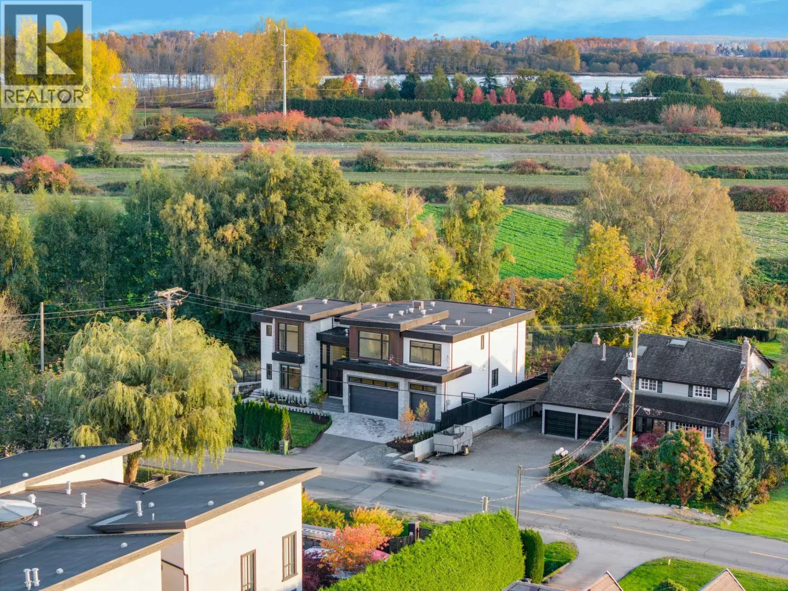 Welcome to 9500 Finn Road, offering modern luxury living in the coveted Gilmore subarea. This exceptional custom-built home features 3,677sq. ft. of refined living space on a private 13,695 sq. ft. lot, designed for both comfort + entertaining. Enjoy SW exposure from the rear, filling the home w natural light & serene views over the Woodwards ravine. Luxury finishes include