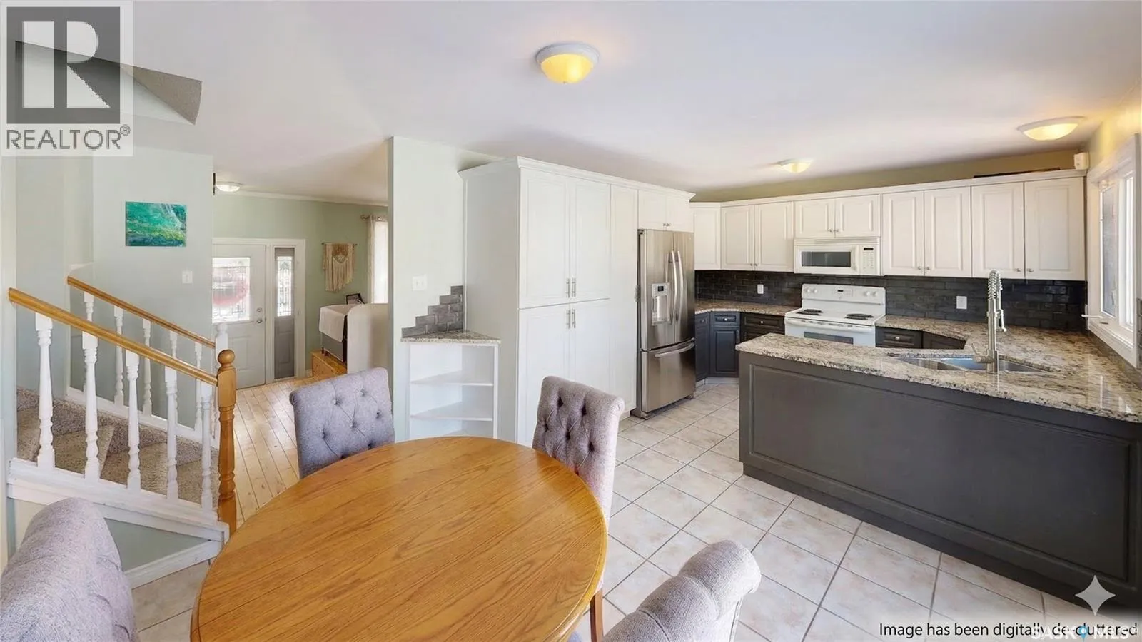 of the home is landscaped and has trees and shrubs, a flower bed and a small patio for seeing the kids off to school. The exposed aggregate driveway has stampcrete accents and leads to the 22 x 20 double attached, insulated garage that has handy overhead storage space. The west facing, fenced backyard has a large deck with a natural gas BBQ hook up, and patio as well as a raised garden bed. You enter the home into the foyer with a handy coat closet nearby. The bright living room has hardwood flooring and large east facing, triple pane windows that let in plenty of natural light. The dining room is spacious and has patio doors leading to the deck and backyard. The kitchen has been updated and has ample cupboard and counter space, glass tile backsplash, durable tile flooring, an extra large cabinet pantry with pull outs, and the fridge, stove and dishwasher are all included! Upstairs on the second level starts with the main 3 piece bathroom with a relaxing jet tub. Next are two good sized bedrooms followed by the primary bedroom with a private 2 piece en-suite bathroom! On the lower third level is the rec room that provides a cozy gathering space with a gas fireplace with brick surround. Another 3 piece bathroom is next followed by a versatile den that makes a wonderful office or craft room. The laundry room finishes off this level and includes the front load, Whirlpool washer and dryer. The lowest level features a flexible area ideal for a games room, play space, or additional family room. The utility room houses the owned high efficiency furnace, gas water heater purchased in 2021 and has tons of even more storage space. As per the Seller’s direction, all offers will be presented on 03/22/2026 4:00PM. (id:62650)