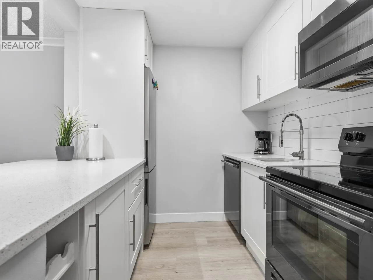 A jewel in the heart of New Westminster! A fully renovated 1 bedroom and 1 bathroom home with a large private balcony on the quiet side of the building. A well managed building with lots of building updates; roof, elevator, plumbing, balconies and patio doors. Extremely convenient location. A short walk to the Skytrain, Douglas College, the Westminster Quay, parks,