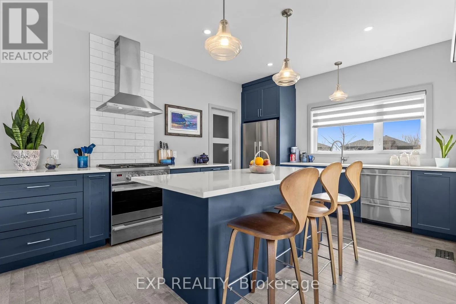 MUST-SEE – Stunning custom-built home with sun-filled, open living, 9 FT CEILINGS, and rich Canadian maple hardwood floors.The main level is built to impress with a cozy natural gas fireplace and a bright, chef-inspired kitchen featuring a gas cooktop, electric oven, quartz countertops, and a walk-through pantry.Designed for real life with a functional mudroom, built-ins, and direct garage access to