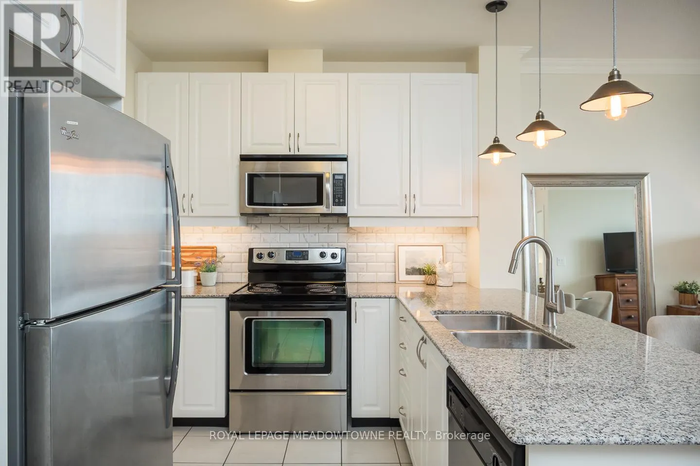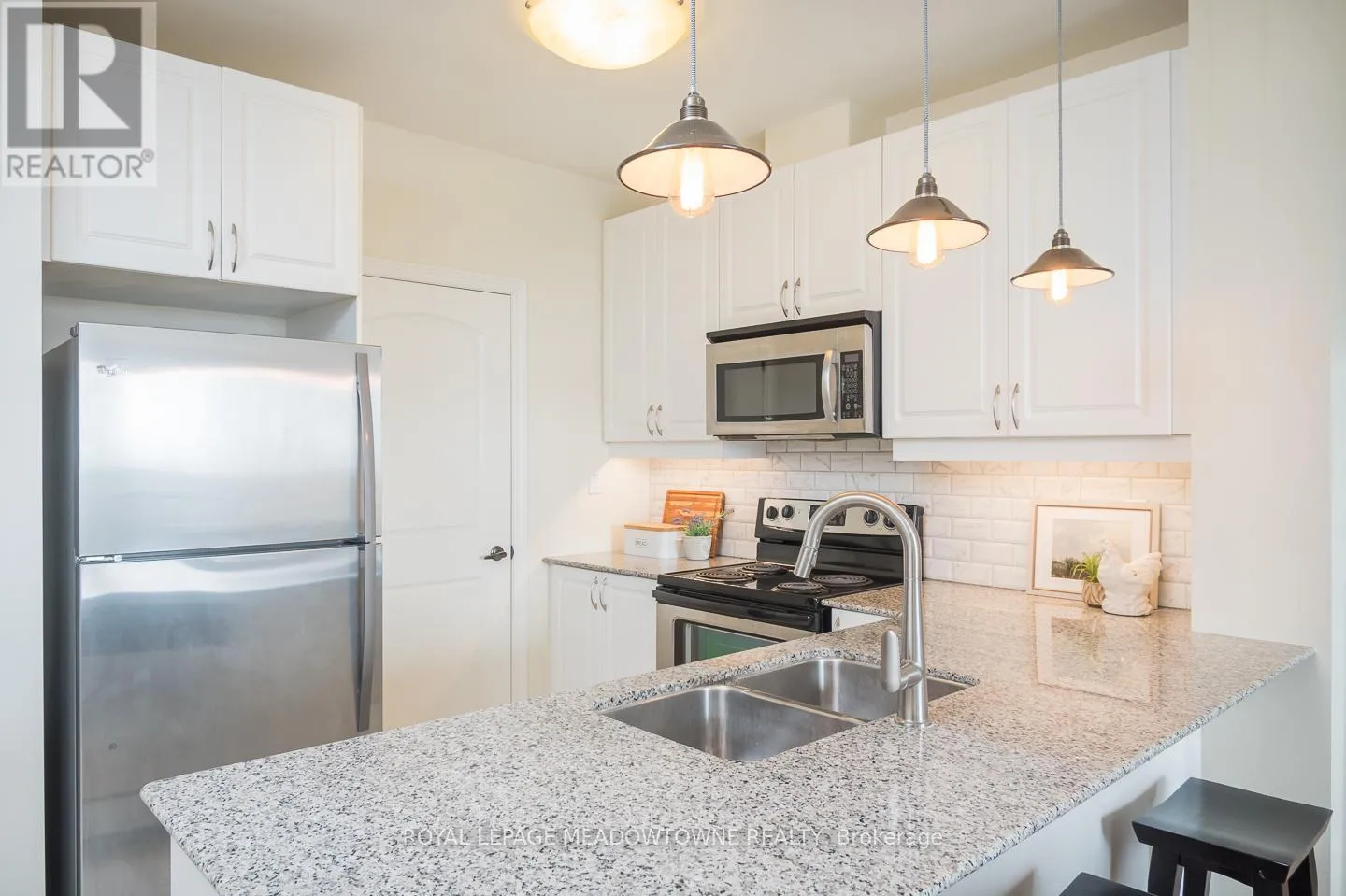 Top-floor living in the heart of Old Milton – with no neighbours above and beautiful open views from the balcony! This bright 1 bedroom + den condo offers a stylish, functional layout in the sought-after GreenLife building. The open-concept living space features a crisp white kitchen with granite countertops, tile backsplash, stainless steel appliances and a breakfast bar overlooking the
