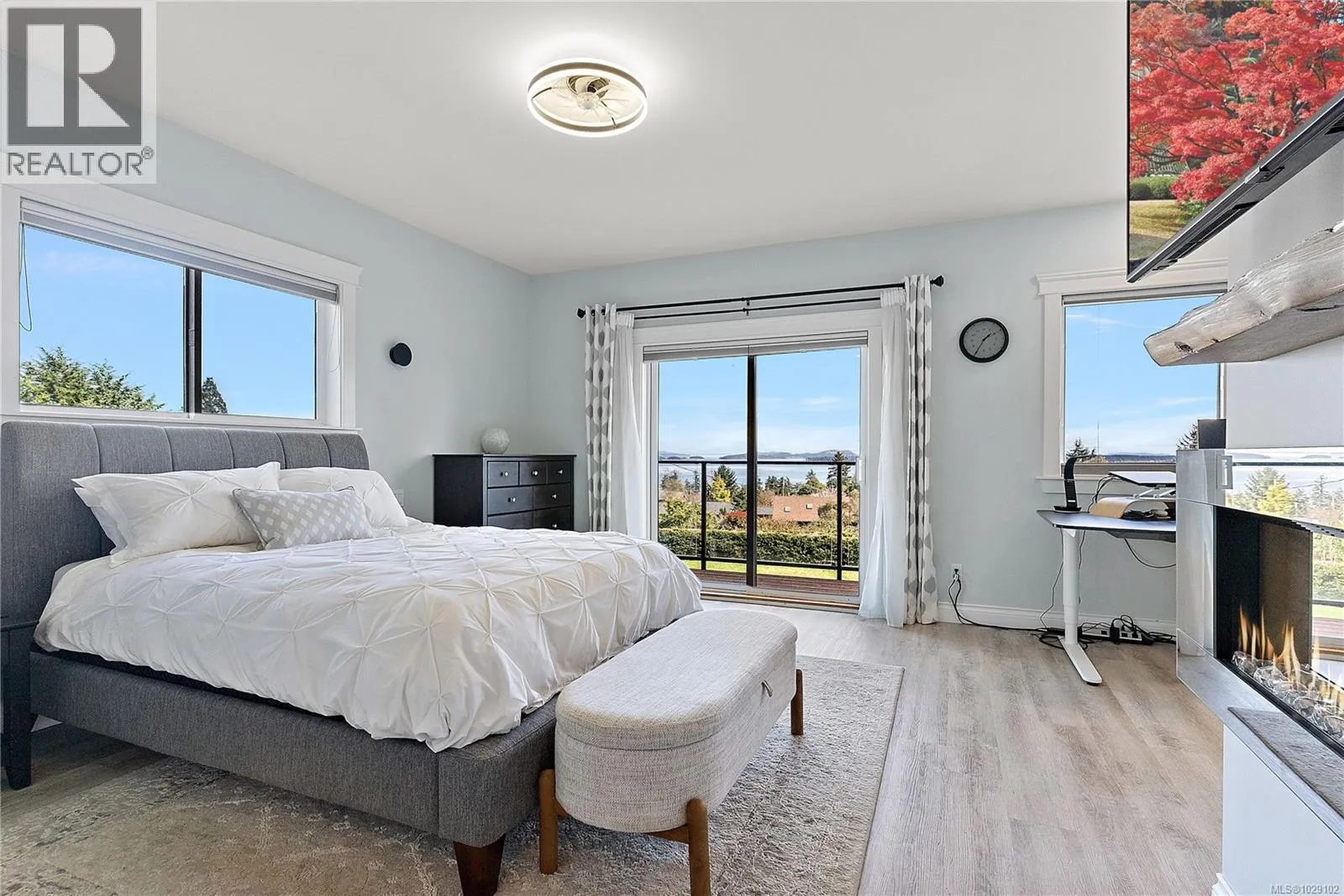 FABULOUS executive home on a no-through road in the desirable Bazan Bay area, featuring ocean views including Mt. Baker as well as the Gulf and San Juan Islands. Exquisite finishes throughout, such as floor-to-ceiling high-quality kitchen cabinetry with a tasteful backsplash, quartz counters, and high-end appliances, including a wine fridge. Additional highlights include tasteful flooring, gas & electric fireplaces, a