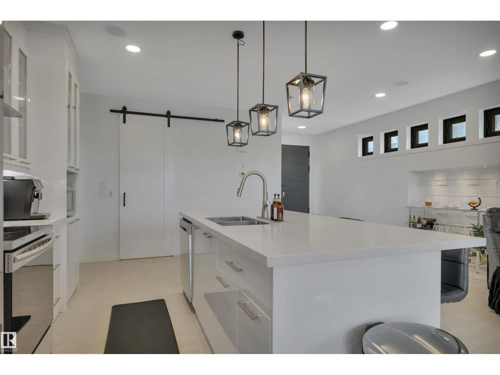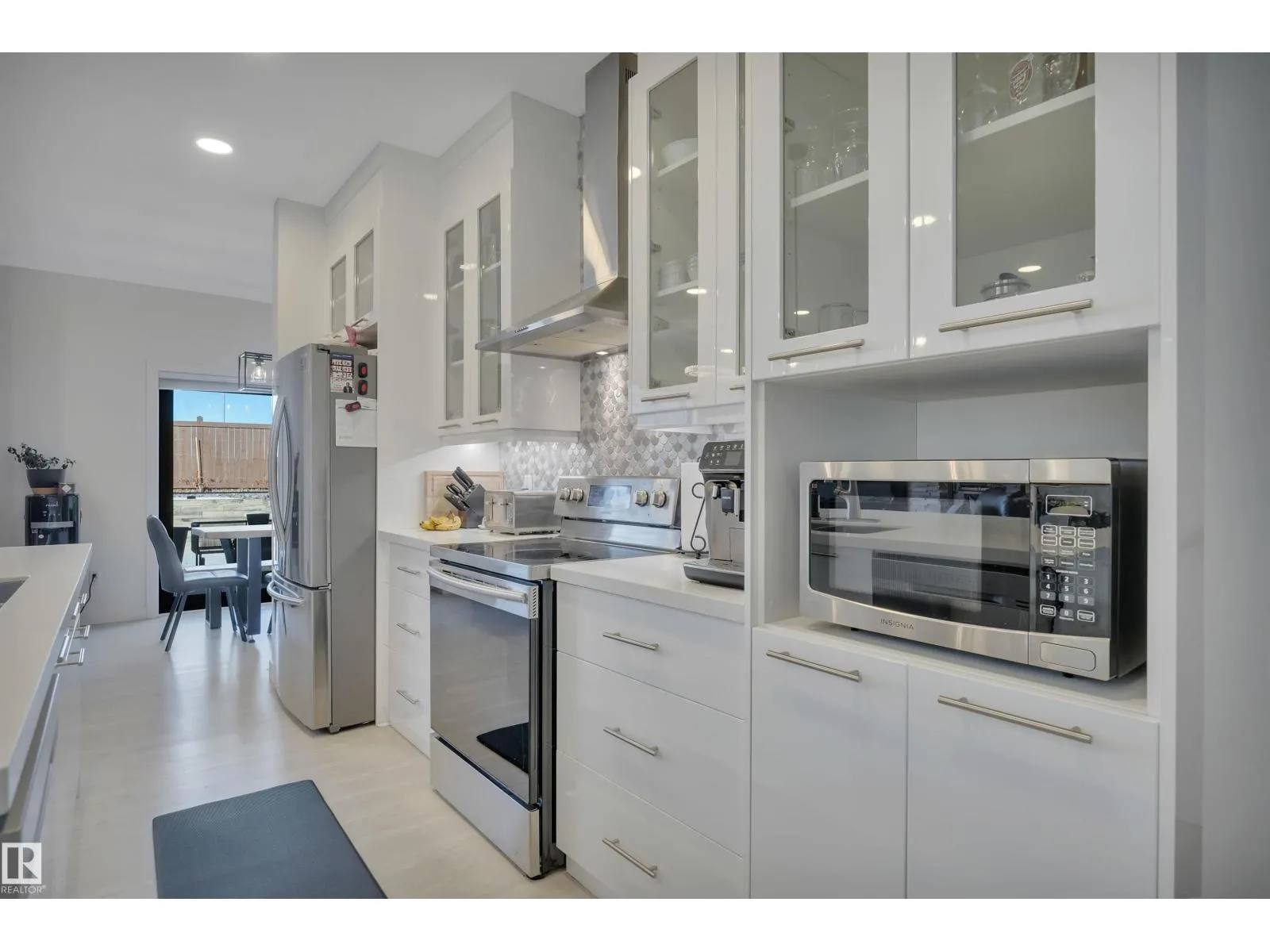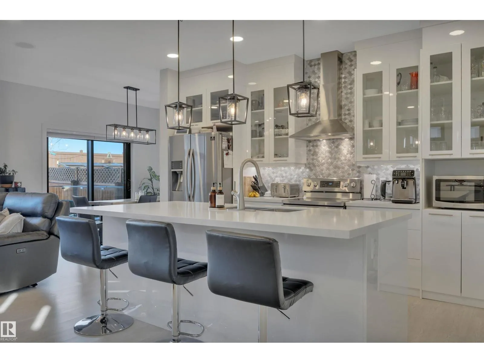 Located in the upscale community of Fenwyck in East Spruce Grove, this stunning 2-storey offers 1,700 sq ft of refined living space. The open-concept main floor features 9’ ceilings, luxury vinyl plank flooring, and a striking stone fireplace. The designer kitchen showcases ivory quartz countertops, a large centre island, floor-to-ceiling glass cabinetry, under-cabinet lighting, stainless steel appliances, walk-through pantry, and